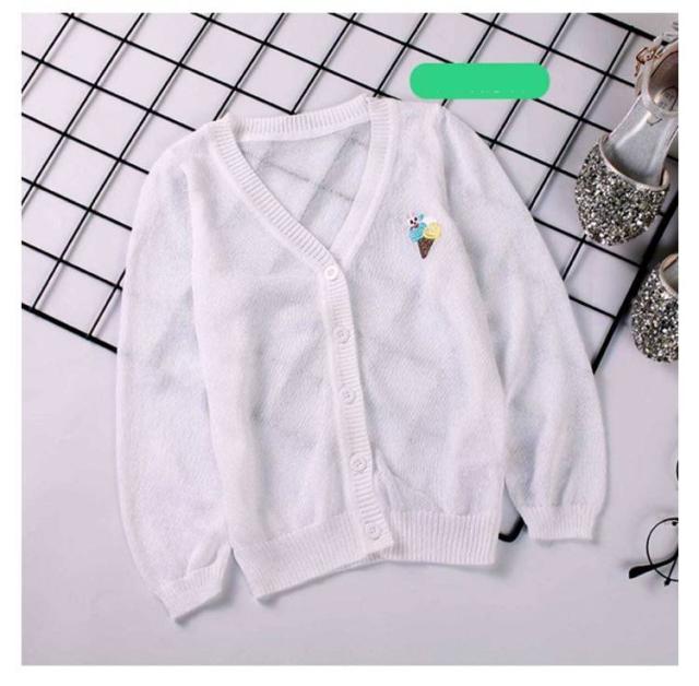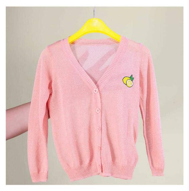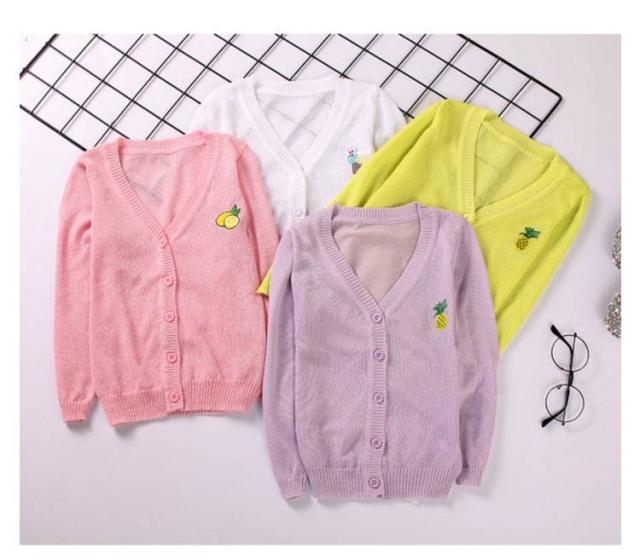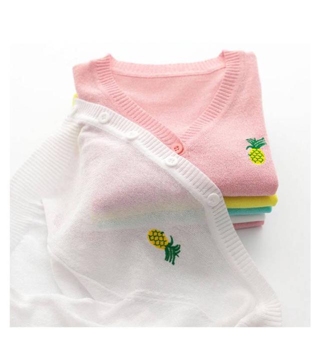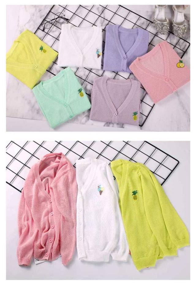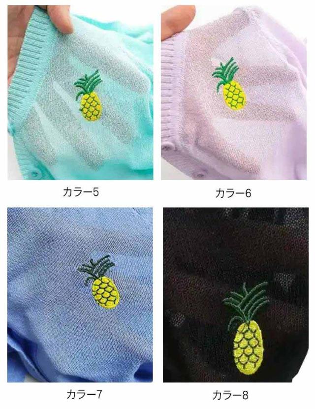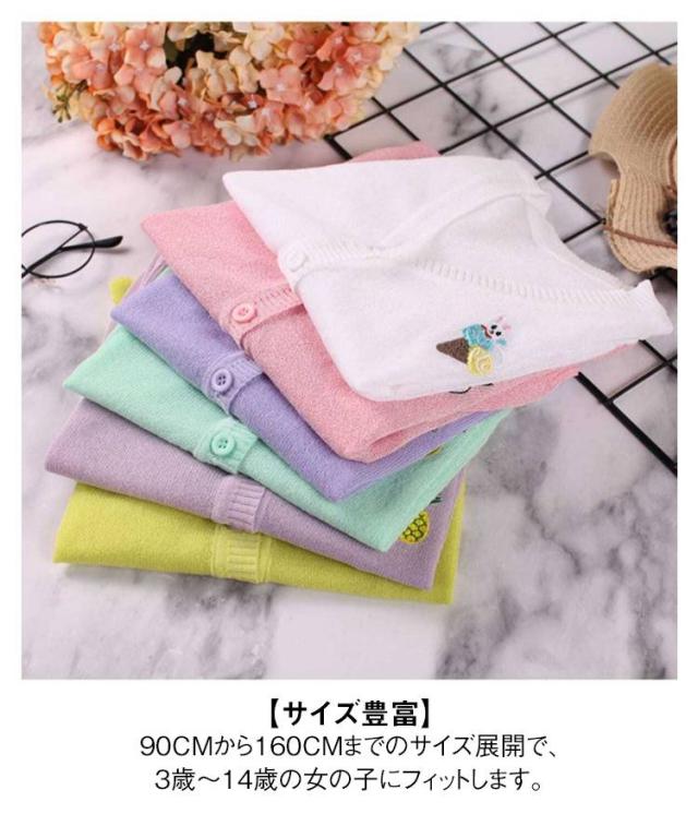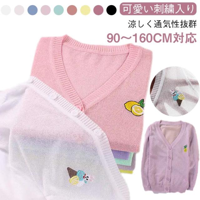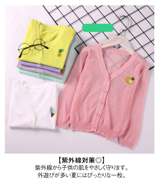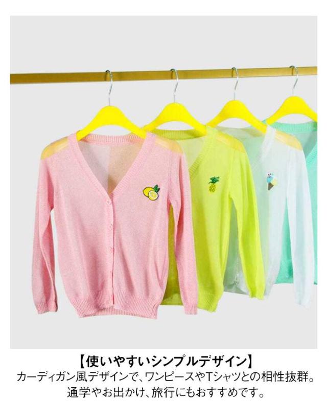 女の子 UVカット カーディガン 冷感 日焼け止め ニット 羽織り 子供用 サマーカーディガン 長袖 薄手 ジュニア パイナップル 刺繍 可愛い 夏服 90−160cm 送料無料