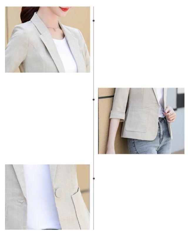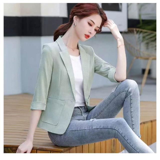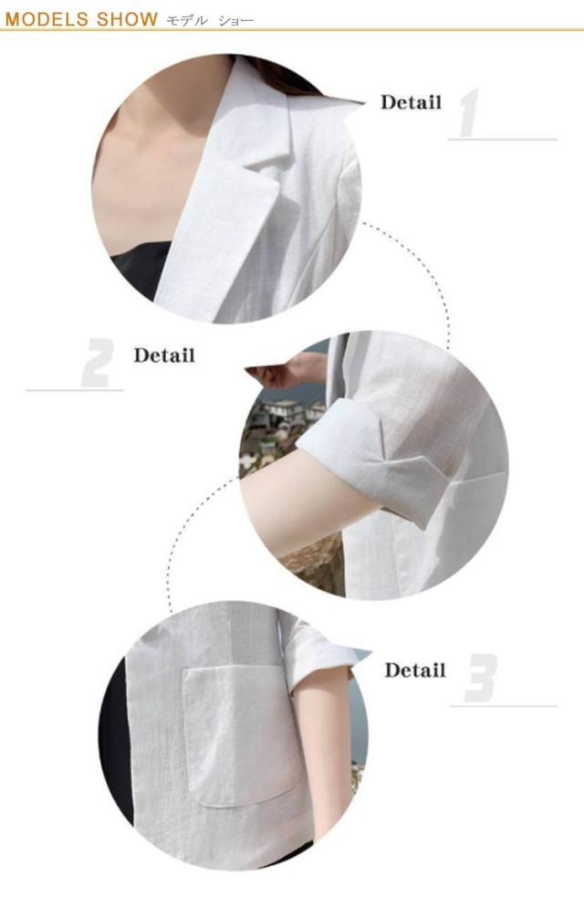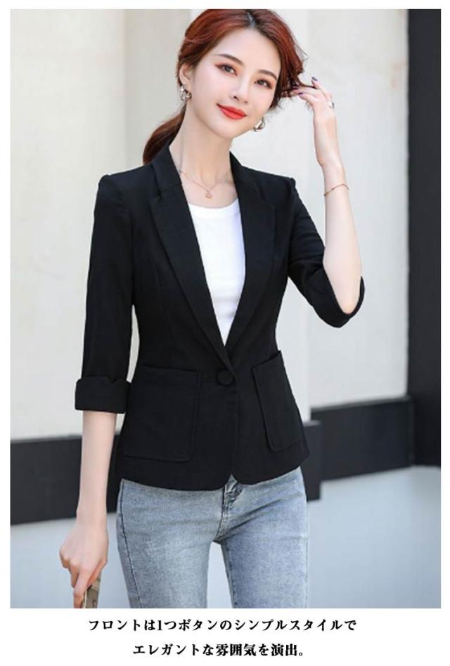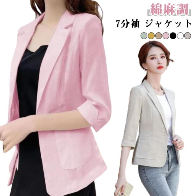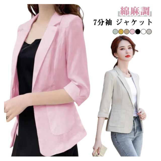 7分袖 ジャケット スリム コンパクト レディース 春夏 テーラードジャケット サマージャケット テーラード 綿麻調 リネン調 薄手 裏地なし 涼しい スーツジャケット ライトアウター 夏ジャケット 一つボタン 通勤 オフィス 【送無】
