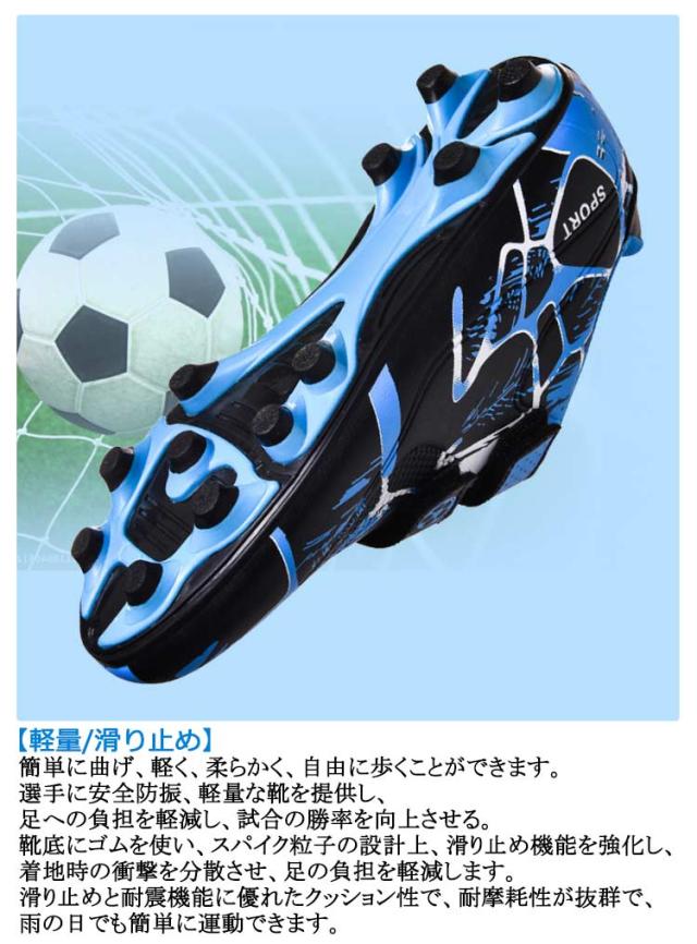 | 19cm-24cm/男女兼用 【優れる素材】アッパーにはで耐摩耗性に優れた合成皮革を採用し、ソフトな履き心地と足をしっかりと包み込み、より快適な履き心地を実現。気軽に曲がり、軽くて、柔らかく、自由に歩くことができる。競技者に安全防震で軽量的な靴を提供して、脚への負担をやわらげまして、競争の勝率が高める。 【通気性が良い裏地】アッパーとインソールには、裏面は通気性の素材を採用し、足を自由に呼吸させることができ、蒸れを抑えて快適なトレーニングをサポートします。通気性と吸汗性が抜群、抑菌防臭機能を持つので、履き心地が快適、運動中により積極的に動き始めます。 【軽量/滑り止め】簡単に曲げ、軽く、柔らかく、自由に歩くことができます。選手に安全防振、軽量な靴を提供し、足への負担を軽減し、試合の勝率を向上させる。靴底にゴムを使い、スパイク粒子の設計上、滑り止め機能を強化し、着地時の衝撃を分散させ、足の負担を軽減します。滑り止めと耐震機能に優れたクッション性で、耐摩耗性が抜群で、雨の日でも簡単に運動できます。 【絶妙なデザイン】靴のすべての部分は、経験豊富なデザイナーによってデザインされています。 靴の外側の色やストライプ、スタッズの長さや距離など、すべてのディテールは、デザイナーの継続的な実験による最高の結果となっています。 品質だけでなく、見た目も重視し、さまざまなスタイルのジャージに合わせられるようにしています。この商品は、快適性と機能性を両立した、優れたサッカーシューズです。競技者にとっては勝率を高めるための必要なアイテムとして、また、普段のトレーニングにも最適です。 【適用シーン】フットサル、柔らかい地面、硬い地面、ゴム製の地面、屋内および屋外のあらゆるフットボール競技場、土や自然の芝生での使用に適しており、人工芝にも適しています。 | |