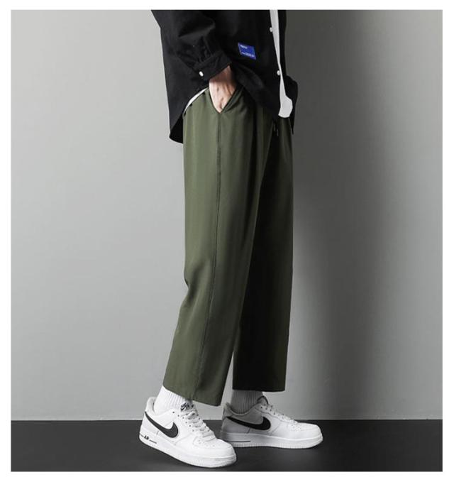 接触冷感 速乾 夏 ワイドパンツ スラックス 涼しい メンズ ルーズ 伸縮 冷感パンツ 2枚セット イージーパンツ ズボン 薄手 韓国 ボトムズ ストレッチ 黒 大きいサイズ ウエストゴム 薄手 ファッション 夏服 パンツ