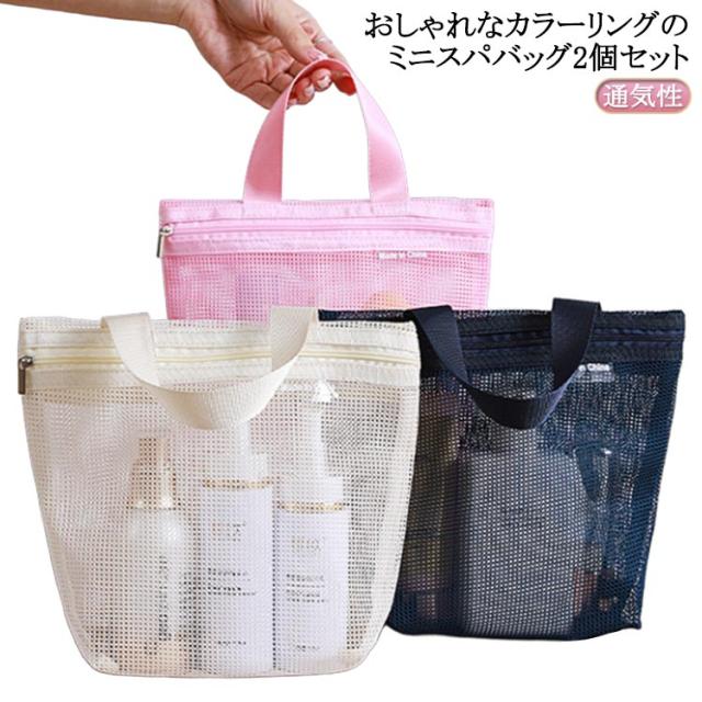 | おしゃれなカラーリングのミニスパバッグ2個セット! メッシュ素材だから軽量で汚れにくく、通気性・水切れ抜群。 コンパクトなサイズ感で使いやすく、ファスナー付きで安心して収納できるのも嬉しいポイント。 内側にはオープンポケット付きで小物の整頓に便利。 マチ幅があり、コスメポーチとして使うのもおススメ♪お財布等の小物を入れてカバンの中に収納しておけばバッグインバッグにも。 デイリー使いはもちろん、温泉やサウナ、海やプールなど幅広く活躍してくれます◎ | |