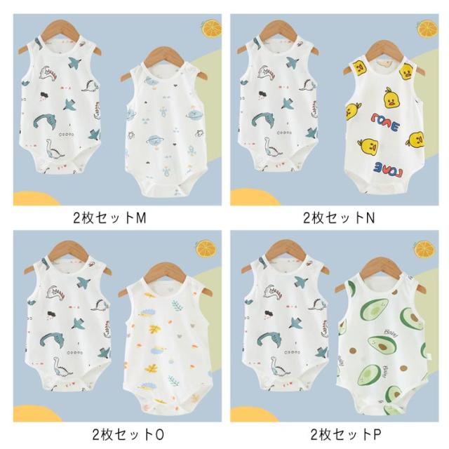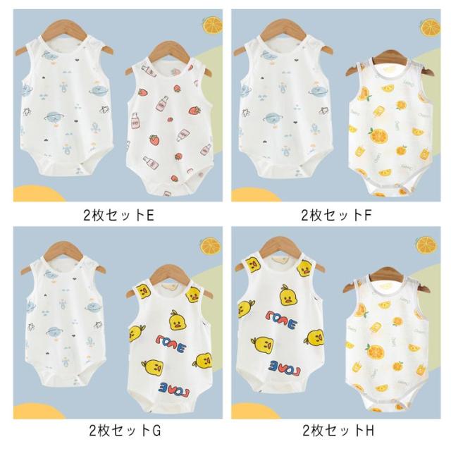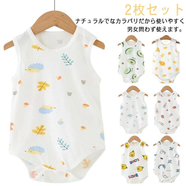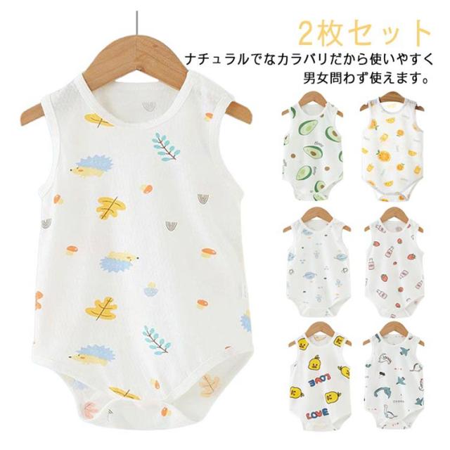 2枚セット ロンパース 肌着 新生児 乳児 ノースリーブ 赤ちゃん シンプル 子供服 くま クマ 子ども 女の子 男の子 春 夏 タンクトップ 出産準備 出産祝い 下着 ギフト プレゼント 66 73 80 90 100 送料無料