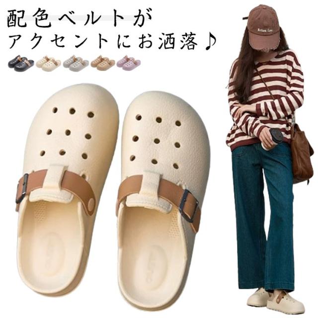 | 配色ベルトがアクセントにお洒落♪ 柔らかくて気持ちのいいクッションがクセになる履き心地! 土踏まずの盛り上がりが、疲労感を軽減し、足に優しい。 ちょっとそこまでのお出かけから社内の室内履きやベランダ用スリッパなどにも◎ サッと履けて、軽量・防水素材で、海やビーチなど水遊びもおすすめのサボサンダル。 | |