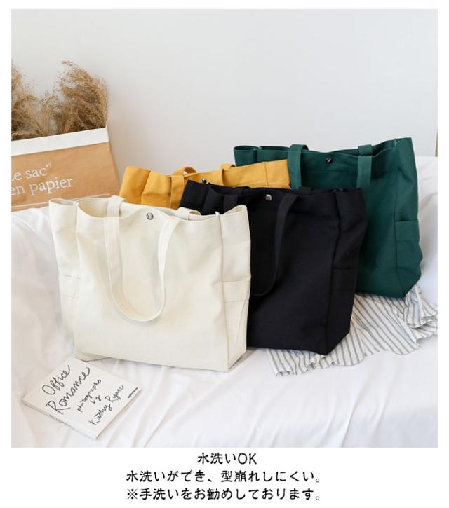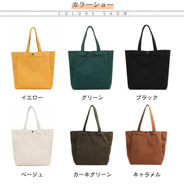 | 4ポケット A4サイズ対応 帆布トートバッグ 9色 【使える♪トートバッグ 帆布 A4サイズ対応】 ・レディース、メンズ、20代、30代、40代、50代 幅広い方にお使い頂けます。 <おすすめポイント> (1)A4も楽々入る大容量 たくさん入るけど大きすぎない絶妙なサイズ感。 A4サイズも楽々入る! (2)4ポケット(メインポケット、ファスナー付きポケット、サイドポケット×2) ありそうで意外にないことが多いサイドポケットとファスナー付きポケットがあり 機能性◎ (3)軽くて疲れにくい わずか320g (4)丈夫な帆布生地 耐久性のある厚手の帆布(キャンバス)素材を使用。手触りの良い滑らかな質感。 (5)水洗いOK 水洗いができ、型崩れしにくい。 ※手洗いをお勧めしております。 (6)シンプルデザイン 様々なシーンで使える。 通勤・通学・マザーズバッグ・習い事・買い物など | |