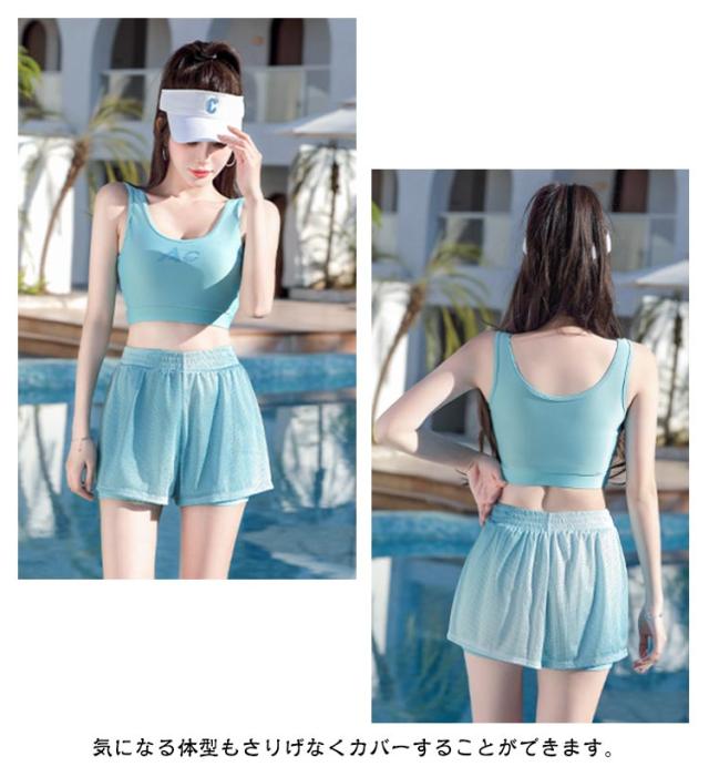 水着 露出控えめ 洋服見え セパレート 大きいサイズ レディース フィットネス 体型カバー 3点セット セットアップ ビキニショーツ セクシー スポーツ 3点セット ビキニ水着 韓国 タンキニ 韓国風 中学生 高校生 UVカート サウナ用