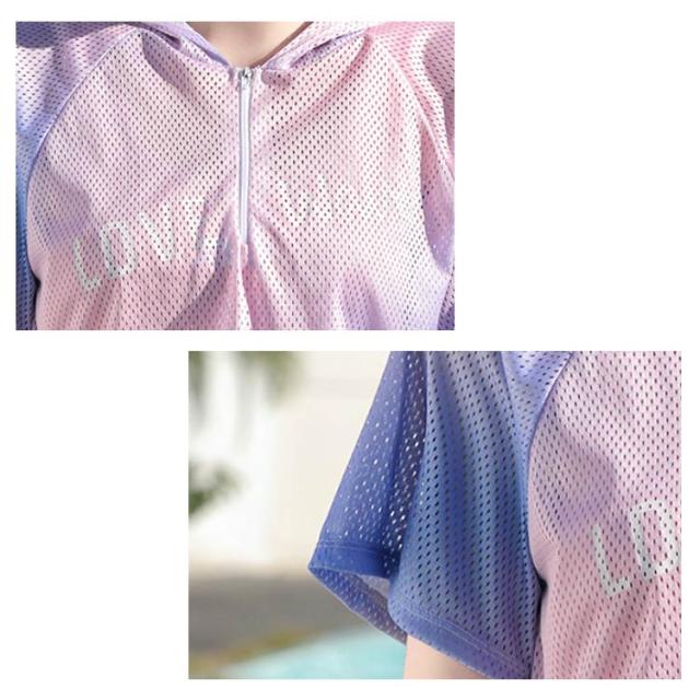 | シンプルなカラーデザインなので着回しは自由自在、シーンに合わせて違った着回しをたのしむことができます! 気になる体型もさりげなくカバーすることができます。 程よい透け感でお洒落に日焼け対策&体型カバーができる優れも 海水浴やプールで大活躍します!水泳トレーニング、夏のサーフィン、ビーチの休暇にも! | |