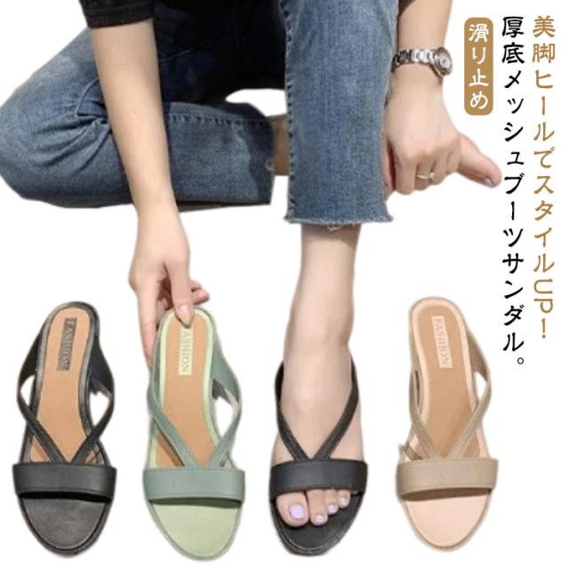 | 美脚ヒールでスタイルUP!厚底メッシュブーツサンダル。 大きめメッシュを使い、重くならないさわやかな足元を演出してくれます。 ヒールとの高低差が少ないウェッジソールで、疲れないらくちんな履き心地! どんなコーデにも合わせやすい、キレイ系優秀デザインなのに、手の届きやすいカワイイお値段のサンダルです。 | |