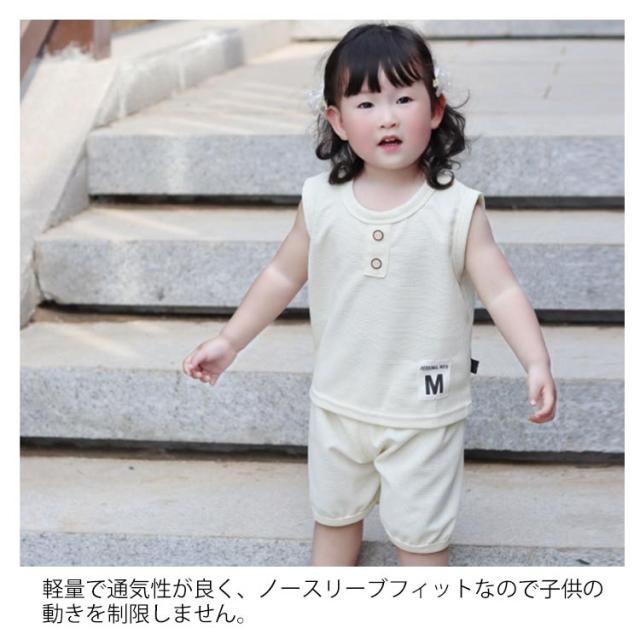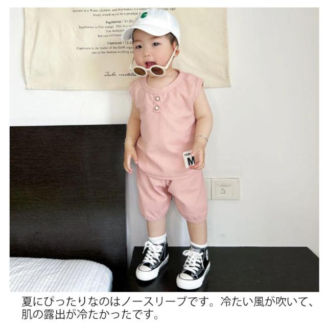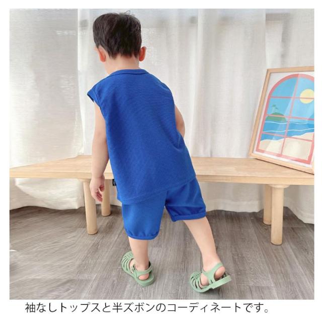 男の子 子供服 トップス ショートパンツ ワッフル 女の子 キッズ ノースリーブ タンクトップ 半ズボン パンツ ショート丈 無地 夏服 上下セット ベビー 上下 セットアップ ラウンドネック ウエストゴム