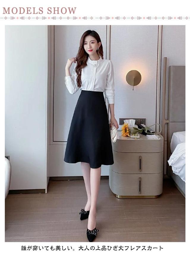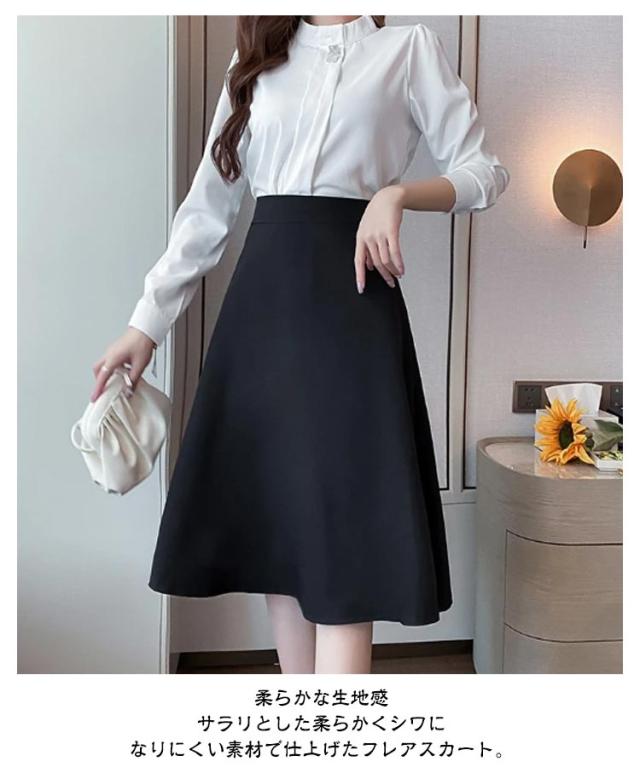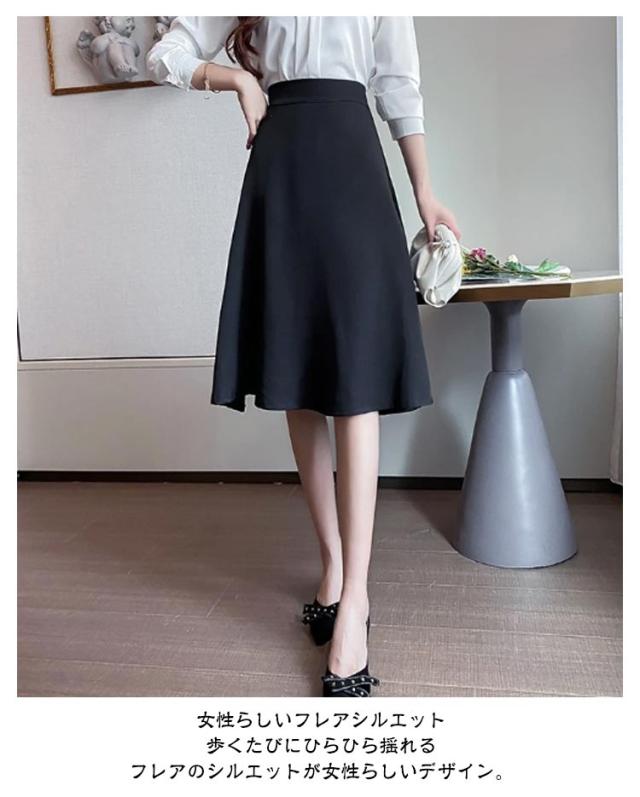 フレアスカート ボトムス 上品 きれいめ ビジネススーツ 黒 通勤 OL 30代 40代 仕事 50代 レディース ミセス 事務服 スカート 制服 春 秋 冬 大きいサイズ ビジネス おしゃれ 美脚 細見え フレアスカート プレゼント ギフト