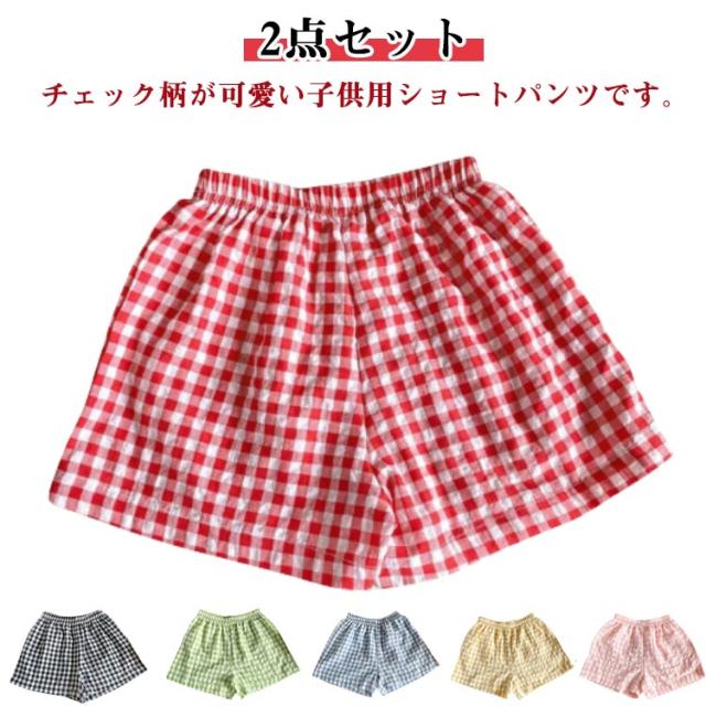 チェック柄 普段着 キッズ 半ズボン かわいい 子供服 男の子 女の子 2点セット 2点セット 短パン ウエストゴム 遊び着 おしゃれ お出かけ カジュアル 通園 短パン 部屋着 ルームウェア 通学 夏 90cm 100cm 110cm 120cm 130cm