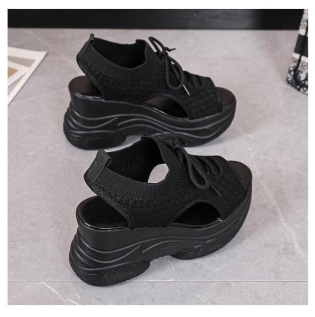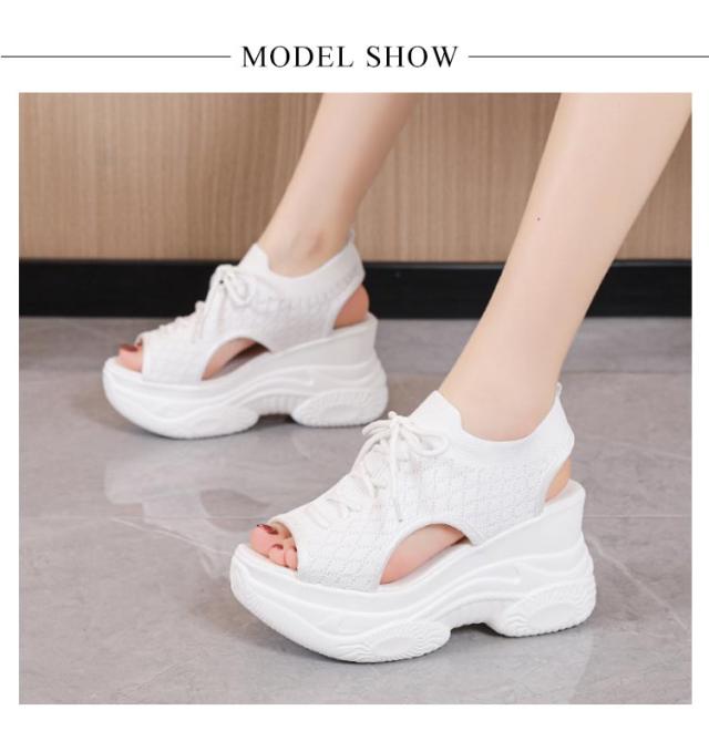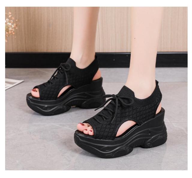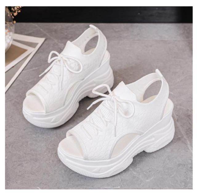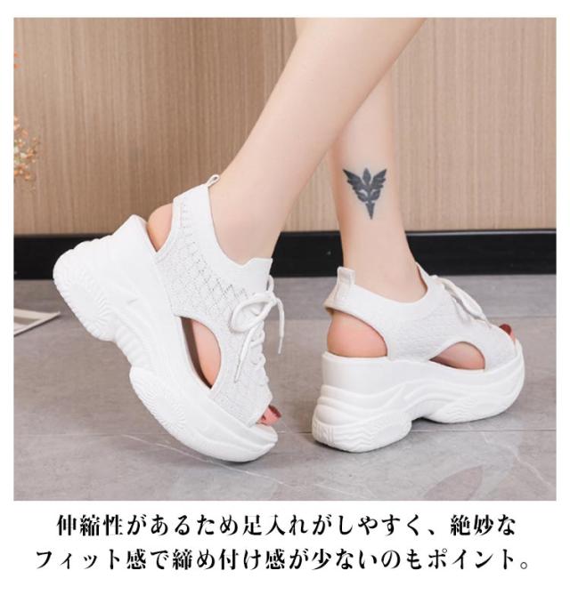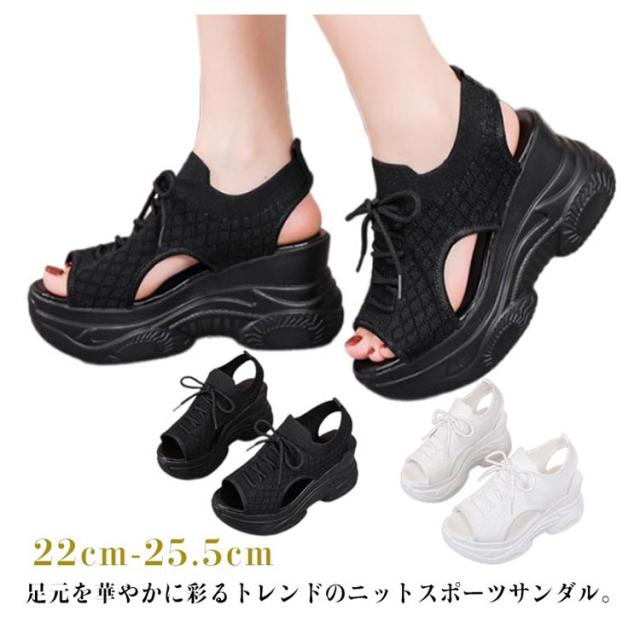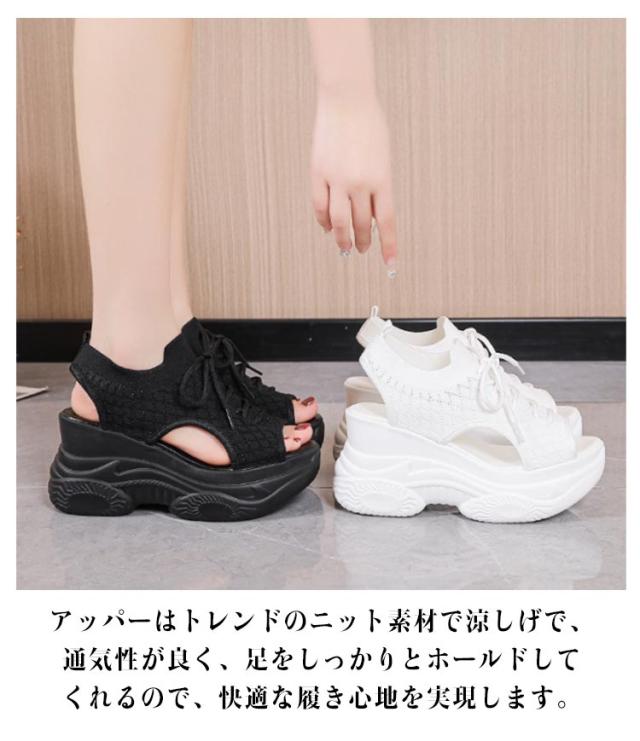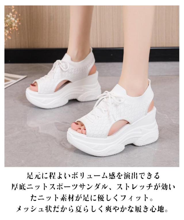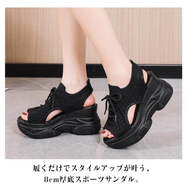 厚底 スニーカーサンダル スポサン 厚底サンダル ニット 軽量 レースアップ 8cm身長アップ ニット スポーツサンダル 歩きやすい 調節 美脚 脚長 22-25.5cm 靴