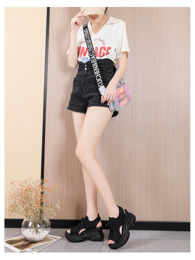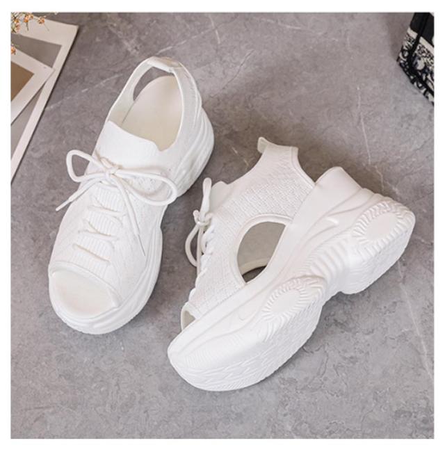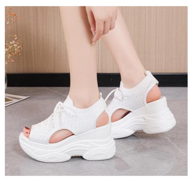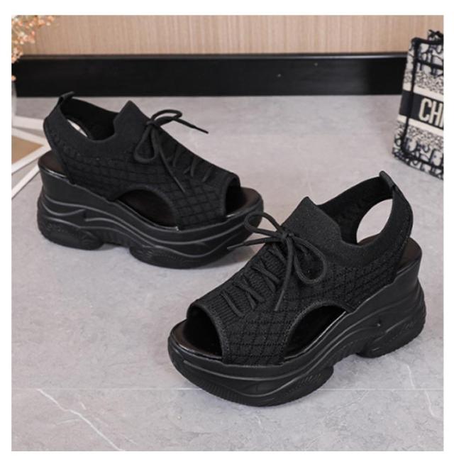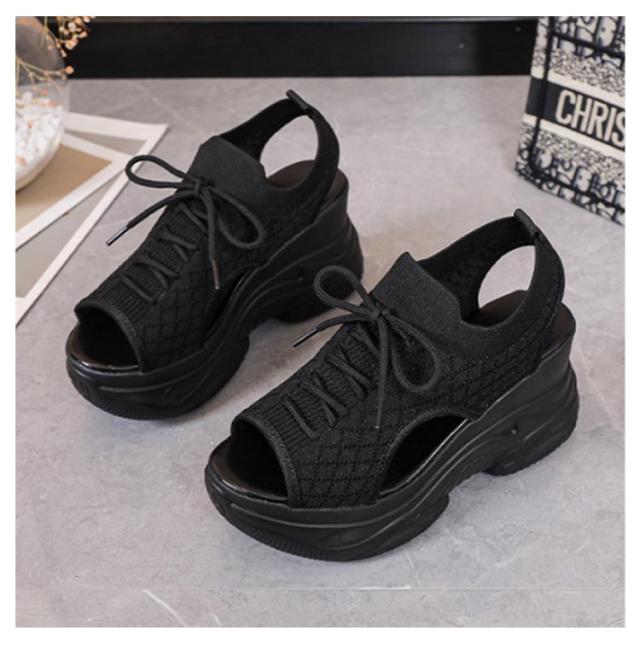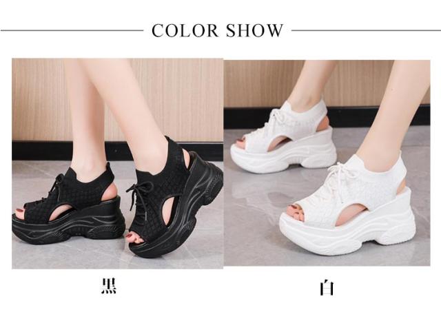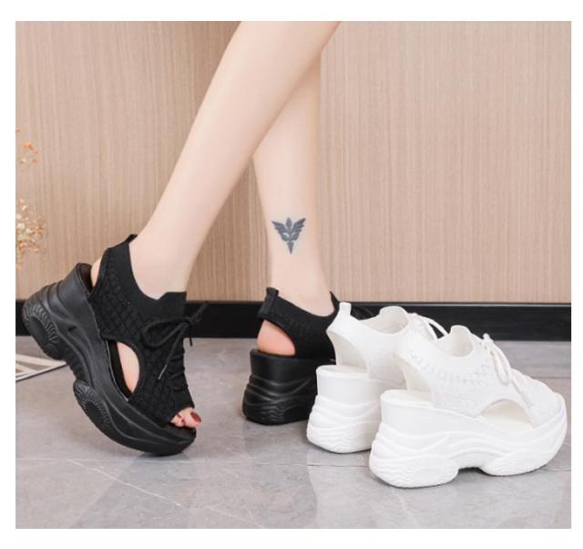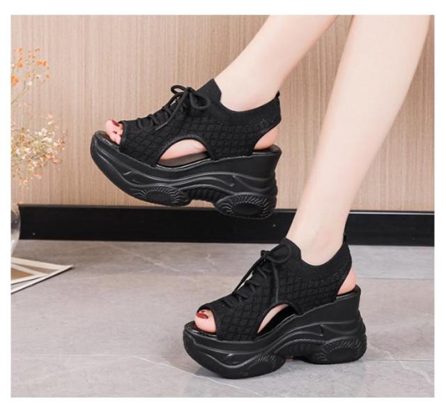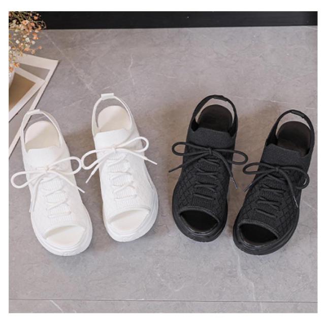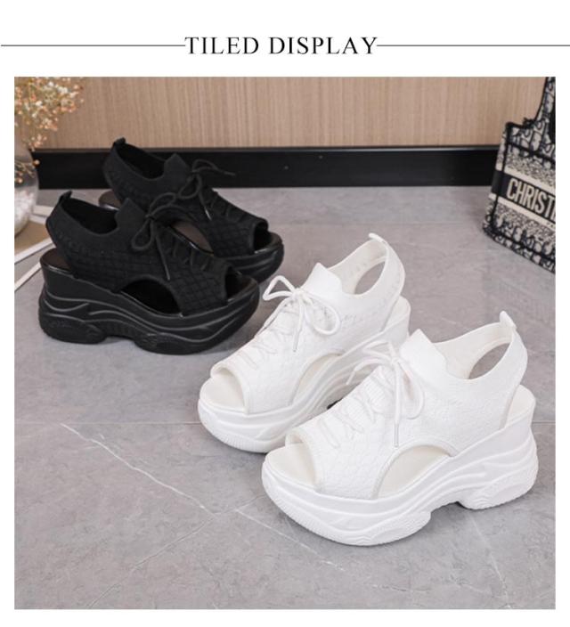厚底 スニーカーサンダル スポサン 厚底サンダル ニット 軽量 レースアップ 8cm身長アップ ニット スポーツサンダル 歩きやすい 調節 美脚 脚長 22-25.5cm 靴