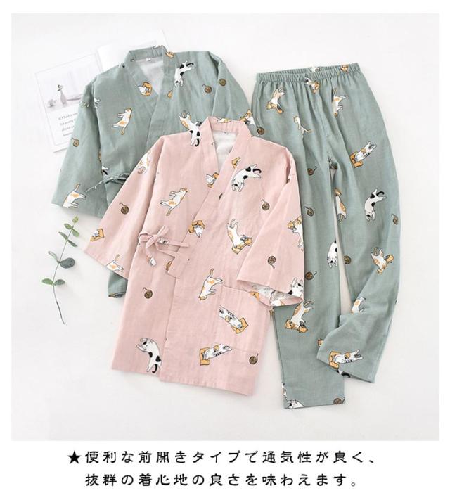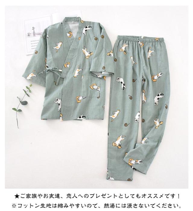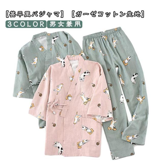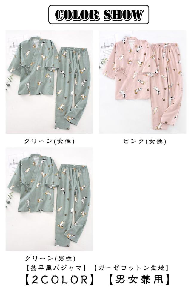 前開き レディース 男女兼用 上下セット メンズ 大きいサイズ 甚平 秋 夏 和式 大人用 パジャマ ルームウェア 甚平 パンツ 和風 通気性 浴衣 女性用 寝間着 部屋着 ナイトウエア 柔らかい かわいい エレガント 長ズボン 春 ガーゼ カップルペア 花火大会 夏祭り