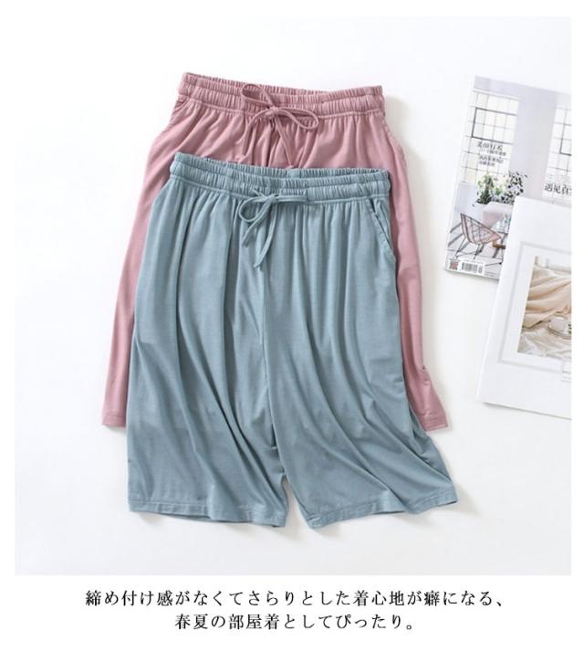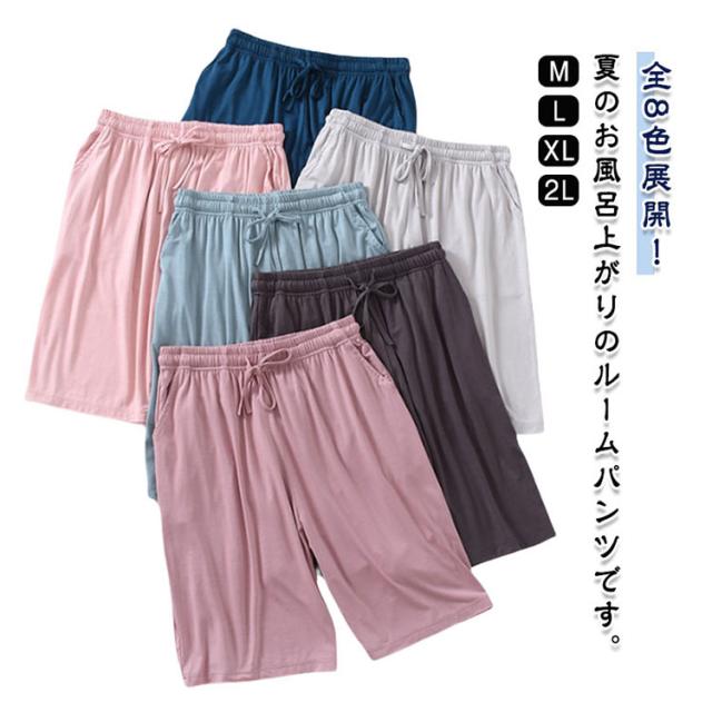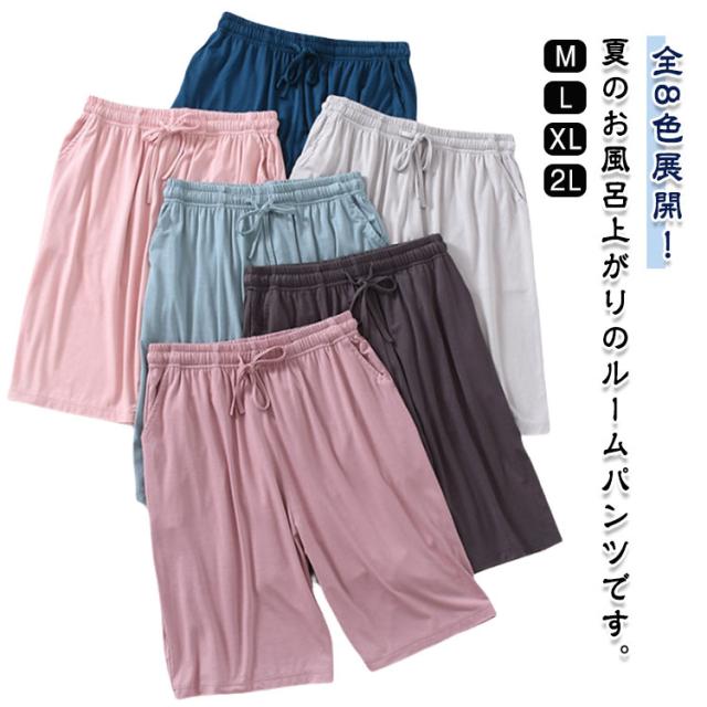 ハーフパンツ ルームパンツ ボトムス ルームウェア 部屋着 ショートパンツ ストレッチ 5分丈 ナイトウェア モーダル パジャマ 夏用 無地 リラックス ハイウエスト 全8色 春夏 ルームパンツ ウエストゴム 薄手 ゆったり 大きいサイズ