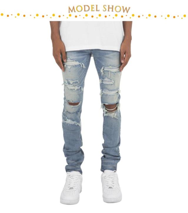 | ダメージデザインを施した目を惹く先鋭的なデザインデニムパンツ。 安さを感じさせない生地で、拘りのスーパーストレッチが効いて脚長なシルエットラインに、しっかり伸縮が効いたストレッチ生地で着心地は抜群。 すっきりしたシルエットに大きめのクラッシュ加工により、スマートでありながらワイルドな渋さも兼ね備えており、大人の魅力をグッと引き立ててくれます。 ちょうど良い股上が非常に履き易く綺麗なバックスタイルを演出。カジュアルからキレイめまで幅広いシーンで活躍する。 遊び心あるデザインデニムで、大人のカッコよさを穿きこなせ。神シルエットで差をつけるならこのパンツ! | |