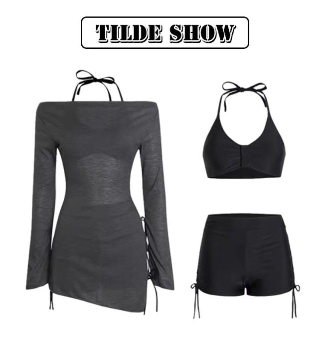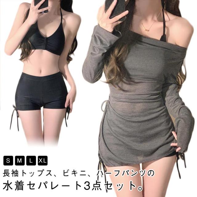 ビキニ セパレート ハーフパンツ ラッシュガード セクシー メッシュトップス UVカット 長袖 トップス オフショルダー 3点セット 水着 体型カバー セパレート レディース セパレート水着 露出控えめ リゾート 海水浴 温泉 プール 海 速乾 吸水 大人可愛い おしゃれ