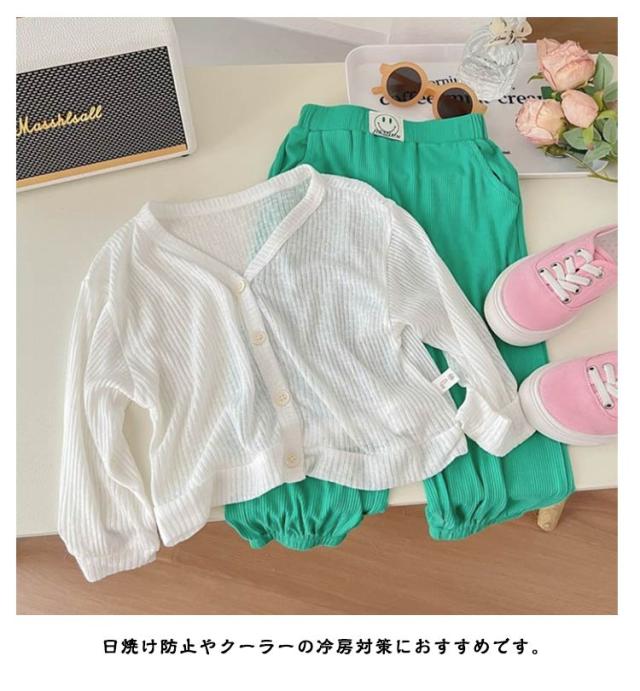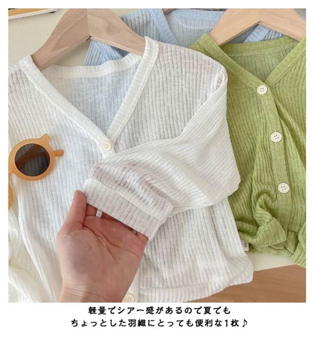 キッズ カーディガン 夏 薄手 uvカット ニット サマーカーディガン UV対策 冷房対策 ベビー服 子供服 紫外線対策 カーディガン サマーニット カーディガン vネック 長袖 子供 男の子 UV ボレロ 無地 スクール カジュアル 日焼け止め