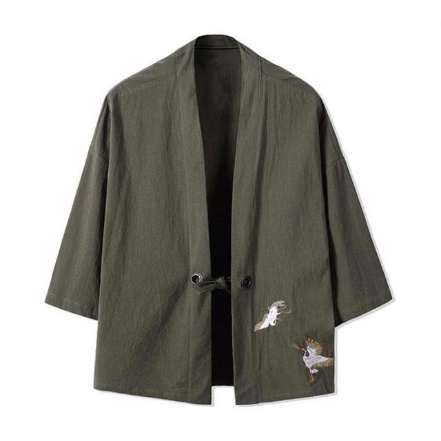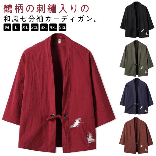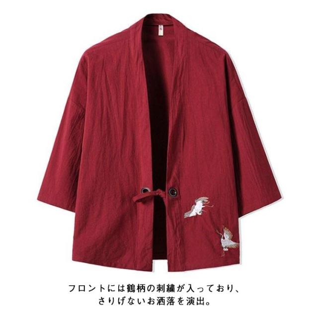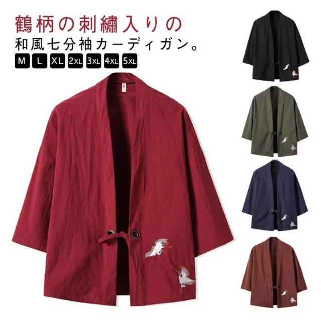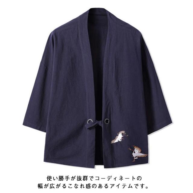 7分袖 甚平風 和風 鶴柄 レディース 和柄 カーディガン 羽織 メンズ 浴衣 つる 薄手 ゆったり UVカット 綿麻調 サマーカーディガン トップス 夏 着物 甚平 羽織 法被 お祭り 花火大会 7分袖 イベント 服 男女兼用 春夏秋