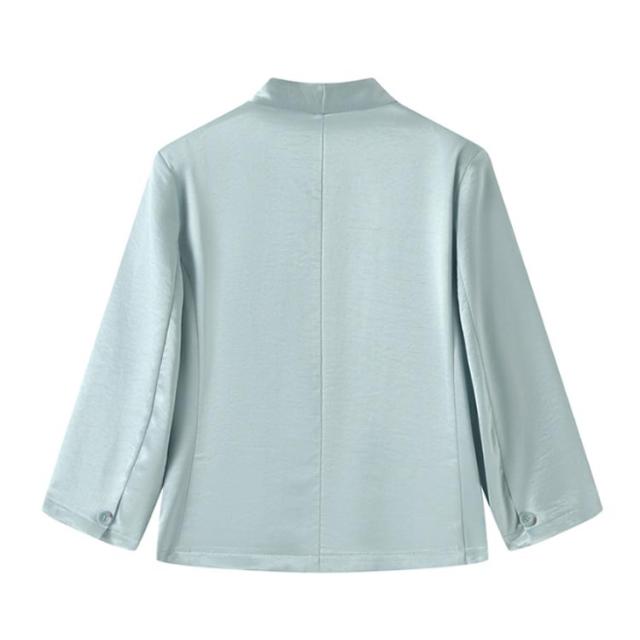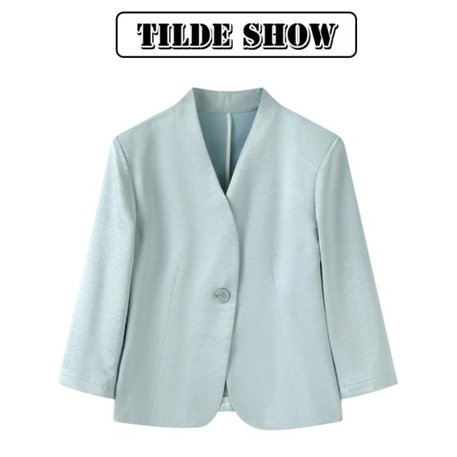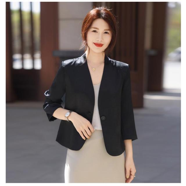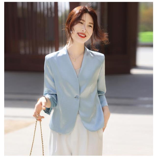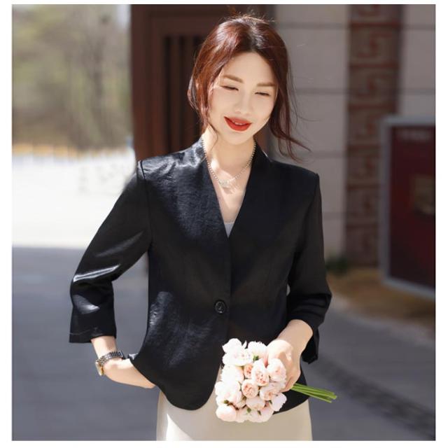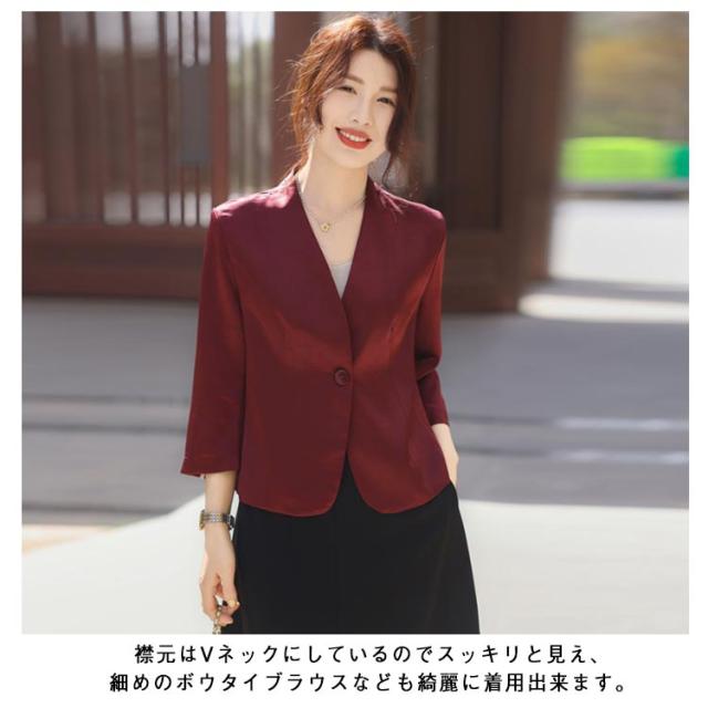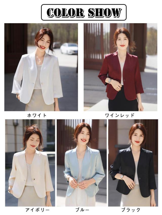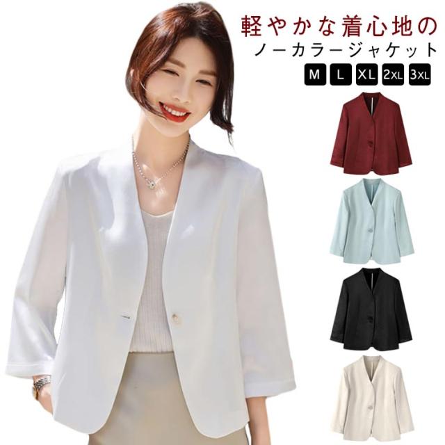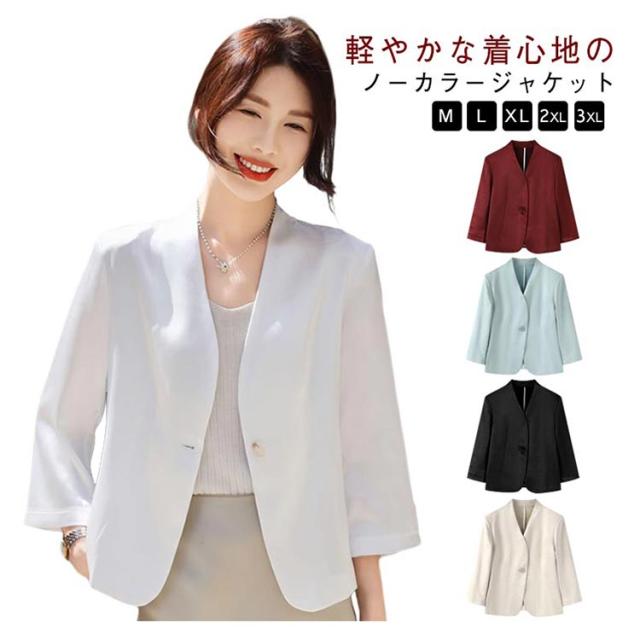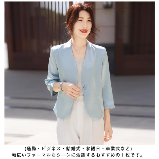 レディース 夏 黒 ショート丈 ゆったり 薄手 サマージャケット 入学 七分袖 ノーカラージャケット 白 サマージャケット 裏地なし ノーカラー アウター カーディガン 羽織り 夏ジャケット 一つボタン 通勤 卒業 ジャケット フォーマル セレモニー きれいめ おしゃれ ブルー