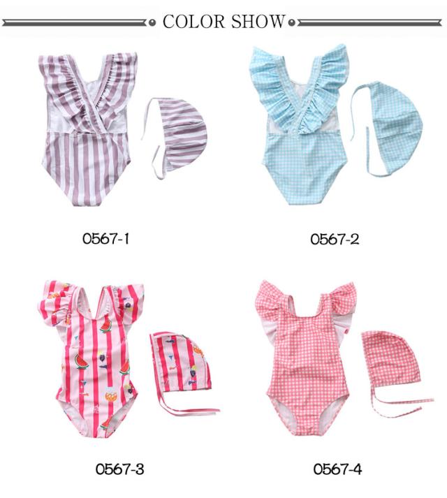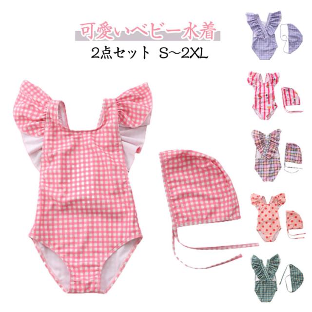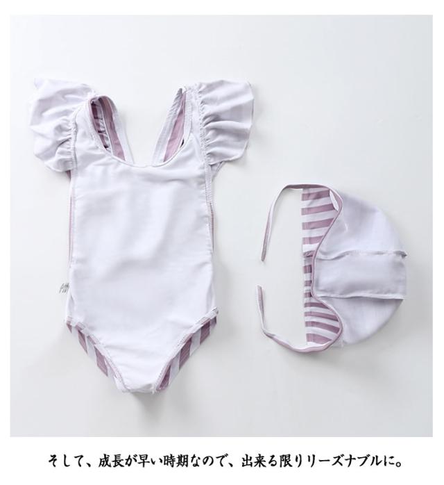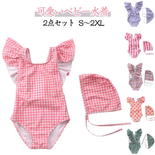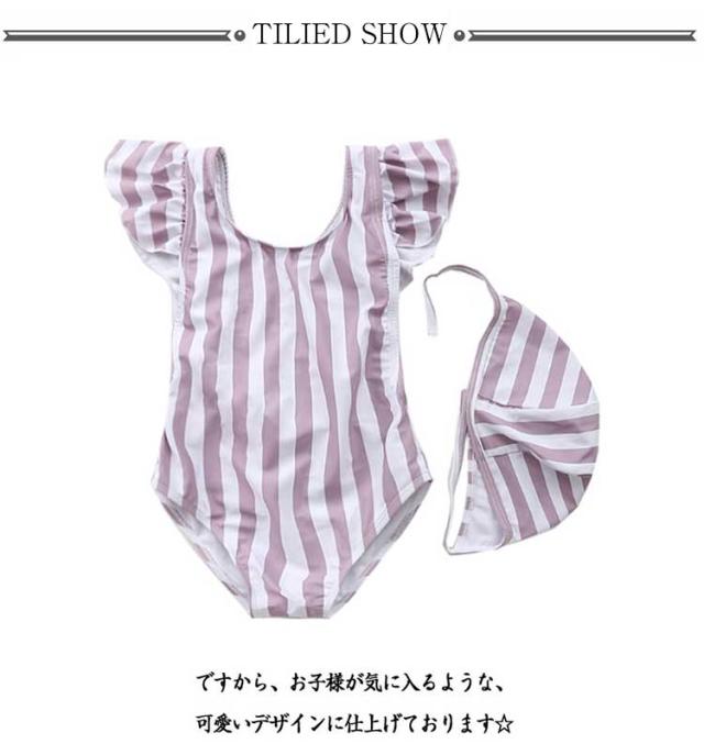 赤ちゃん 水着 ベビー服 帽子 子供用水着 プール 女児 女の子 2点セット ワンピース 水泳帽付き スイムウエア キッズ 女児 SNS人気!子供 スイムキャップ スクール 水着 かわいい ストライプ みずぎ 水着 こども フリル おすすめ 大きいサイズ