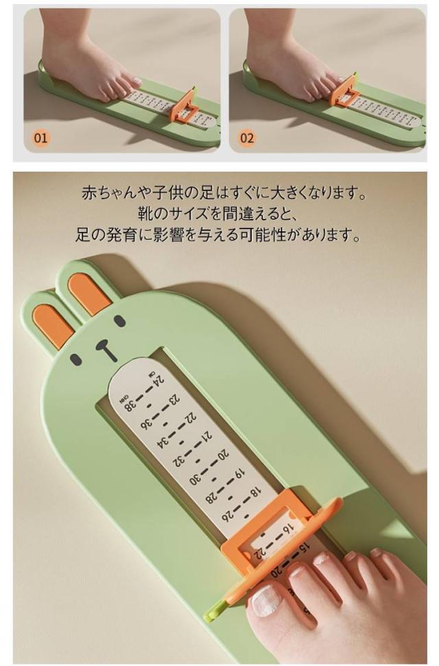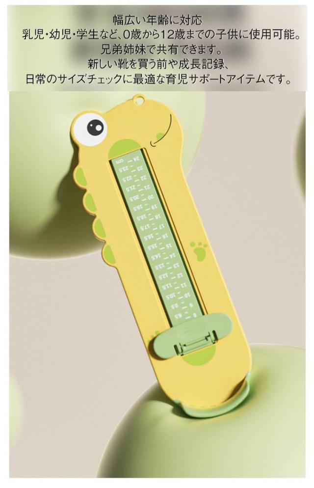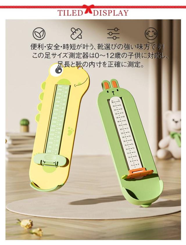 | 便利・安全・時短が叶う、靴選びの強い味方です! 赤ちゃんや子供の足はすぐに大きくなります。 靴のサイズを間違えると、足の発育に影響を与える可能性があります。 この足サイズ測定器は0〜12歳の子供に対応し、足長と靴の内寸を正確に測定。 新しい靴を買う前や成長記録、日常のサイズチェックに最適な育児サポートアイテムです。 幅広い年齢に対応 乳児・幼児・学生など、0歳から12歳までの子供に使用可能。兄弟姉妹で共有できます。 安全で安心な素材 環境に優しいABS素材を採用。無毒・無臭で、角も丸く設計されており、安全に使えます。 コンパクトで持ち運び便利 軽量でコンパクトな設計により、収納しやすく、外出先やお買い物中の使用にも便利。 簡単操作で誰でも使える 足を計測器に合わせて置き、スライダーを動かすだけ。ママ一人でもすぐにサイズを測れます。 | |