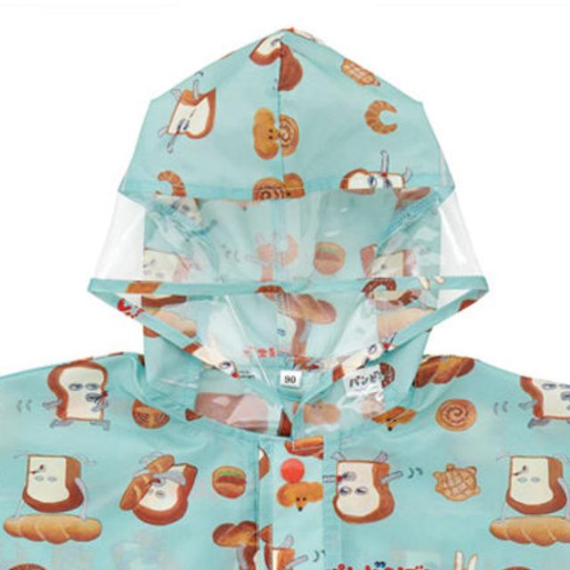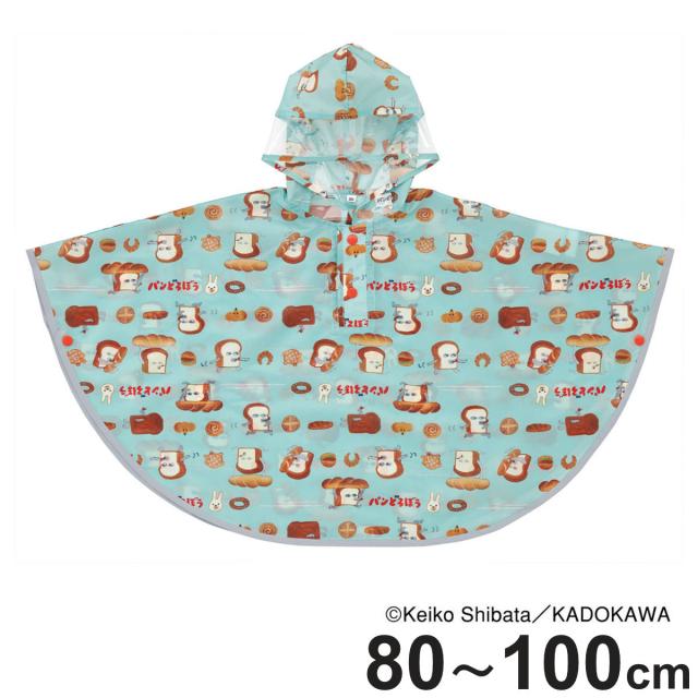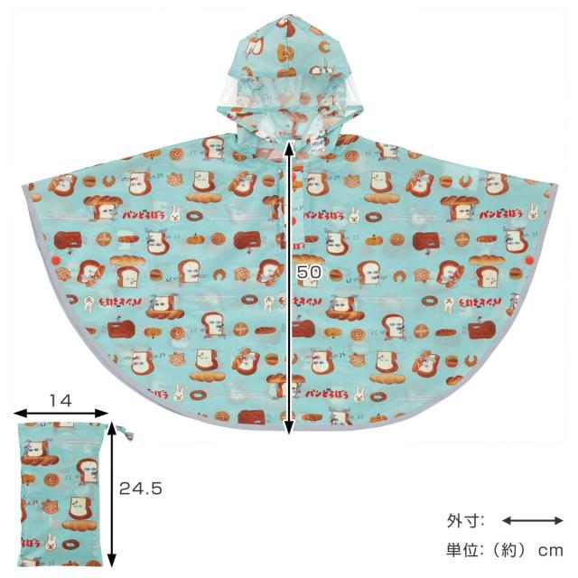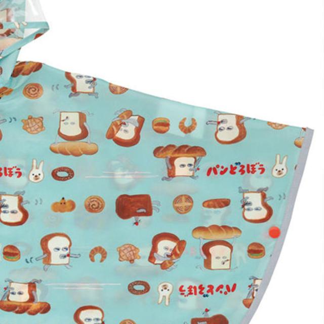 レインコート キッズ レインポンチョ 前開き 収納袋付き パンどろぼう ( 80cm〜100cm 雨具 子供 レインウェア 雨合羽 合羽 かっぱ ランドセル対応 子ども 幼児 幼稚園 保育園 通園 男の子 女の子 かわいい )