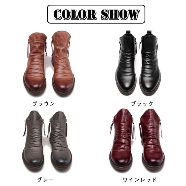 ブーツ ドレープブーツ ショートブーツ メンズブーツ ワークブーツ ブーツ チャッカブーツ サイドジッパー メンズ フォーマル ビジネス 通勤 仕事 履きやすい 秋 冬 滑らない カジュアルシューズ