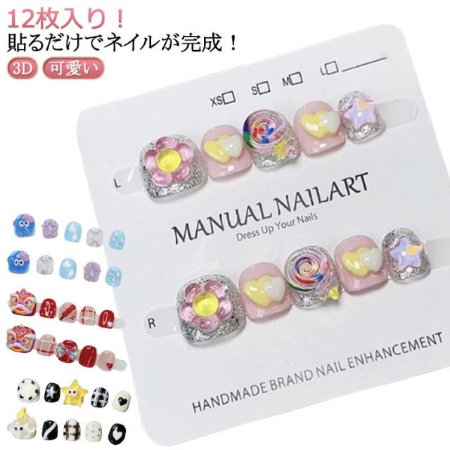 シンプル 秋 ネイル キャラクター 可愛い 3d 爪やすり 冬 人気 12枚入り粘着テープ式 キッズ キッズ フラワー 夏 韓国 おしゃれ ネイルチップ こども用 花 可愛い 誕生日 かわいい おしゃれ 映え 春
