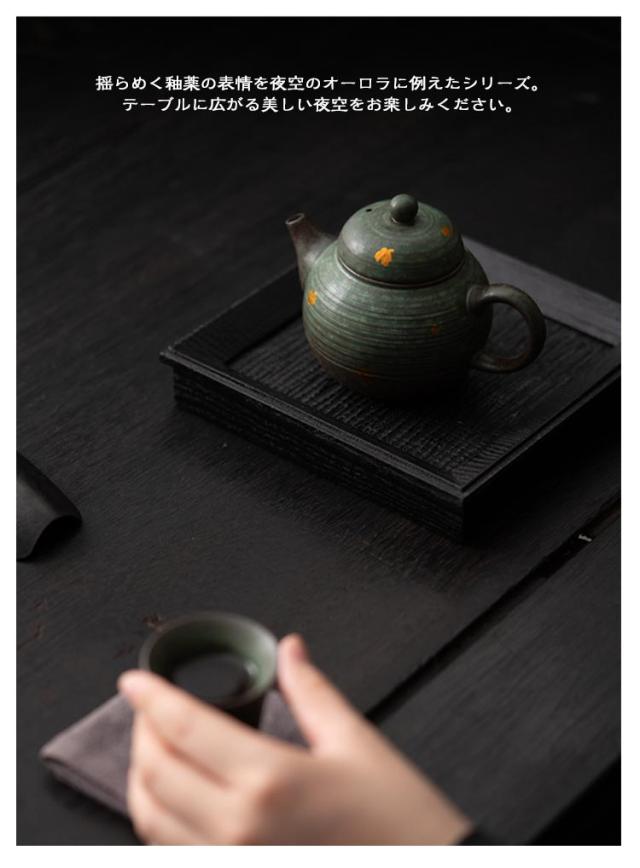 | 懐かしさを感じるレトロデザインのポット。 主張し過ぎず食卓を和やかな雰囲気にしてくれます。 こちらは、180mlのポット。和洋問わず馴染みが良いのでティーポットとして紅茶をいただいたり、急須のように日本茶を楽しむ際にもお使い頂けます。毎日の食卓で活躍します。 茶こし付きで、持ち手も大きく、安定感がるので扱いやすく、日本茶、紅茶どちらにもお使いいただけます。 同じシリーズのポットと合わせて使えば、気軽におしゃれなカフェスタイルを楽しめますよ。 揺らめく釉薬の表情を夜空のオーロラに例えたシリーズ。テーブルに広がる美しい夜空をお楽しみください。 こんな方におすすめ レトロ感を味わえるポットをお探しの方 茶こし付きの急須をお探しの方 | |