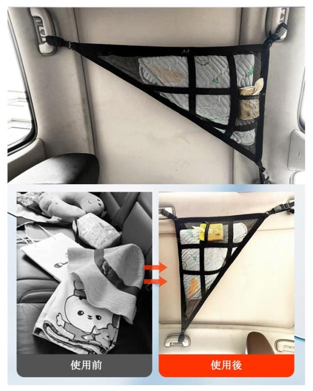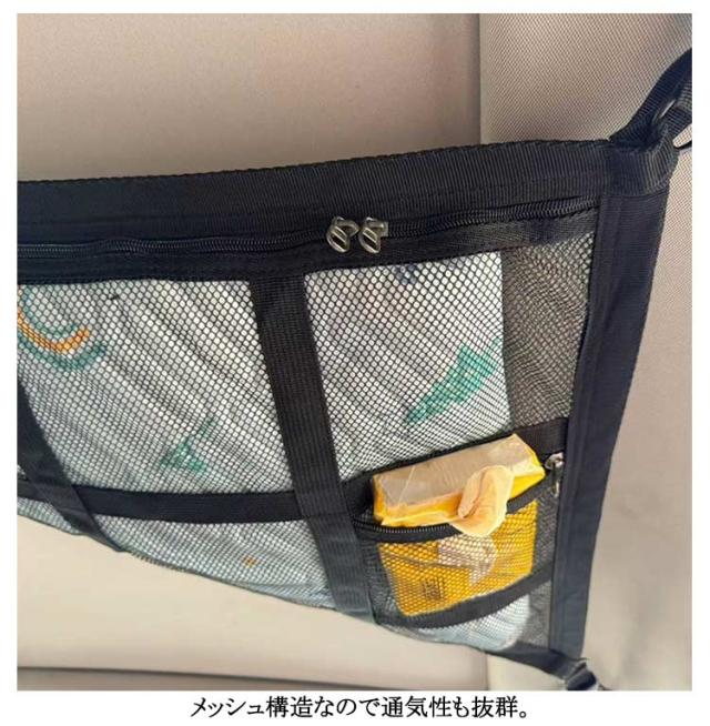 | 車内天井収納!ポリエステル材質採用耐久性があり丈夫。 メッシュ構造なので通気性も抜群。 車内の使用スペースを増やす、天井の収納スペースを取らない。 | |