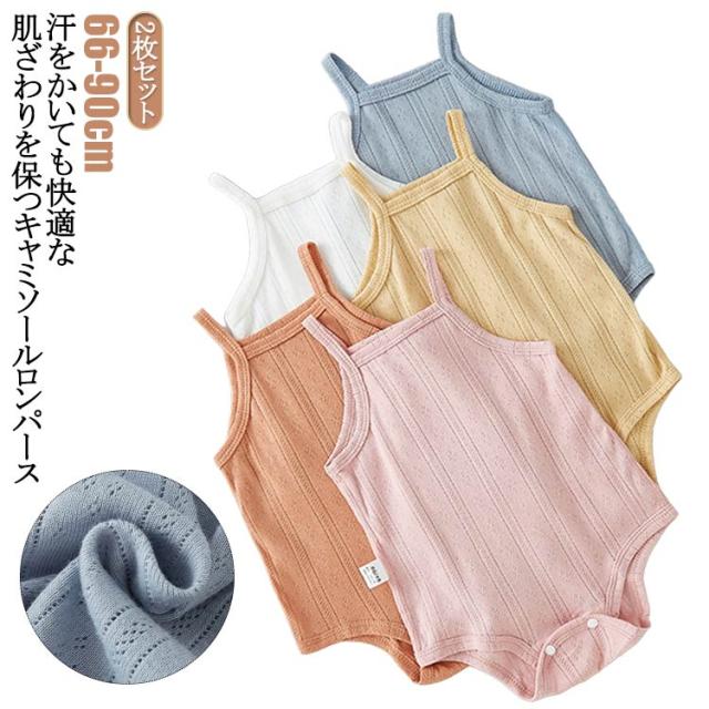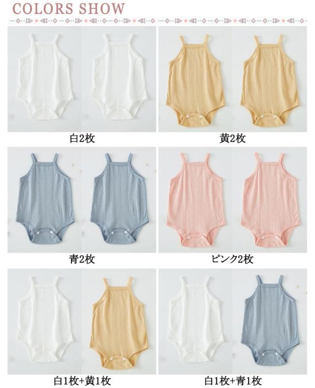 赤ちゃん 80 綿 赤ちゃん肌着 2枚セット!べビー ロンパース ボディ肌着 ベビー肌着 透かし編み ベビーロンパース コットン ベビー服 キャミソール ノースリーブ 薄手 春 透かし編み 夏物 薄い 66 73 新生児肌着 90cm 女の子 男の子 夏