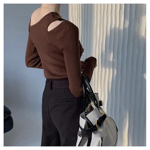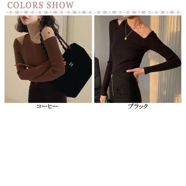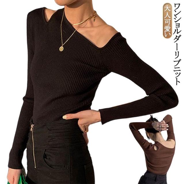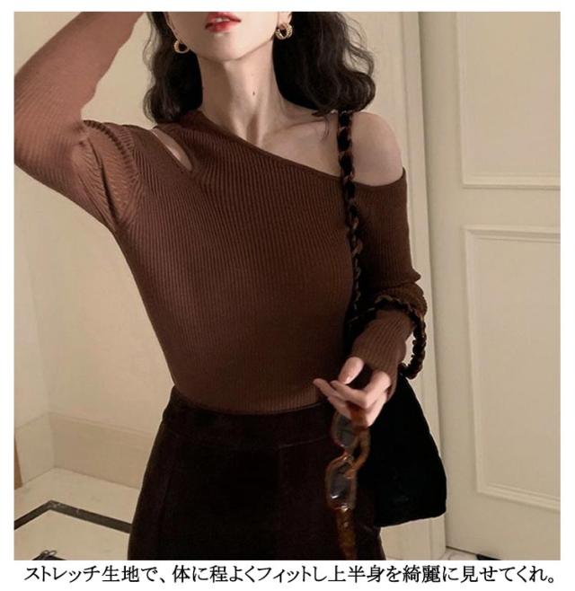 ニットソー 冬 トップス ワンショルダー ニットプルオーバー ニット 細見え オフショル 長袖 セーター トップス リブニット オフショルダー トップス ワンショルダー 大人可愛い シンプル カジュアル フェミニン 春 秋