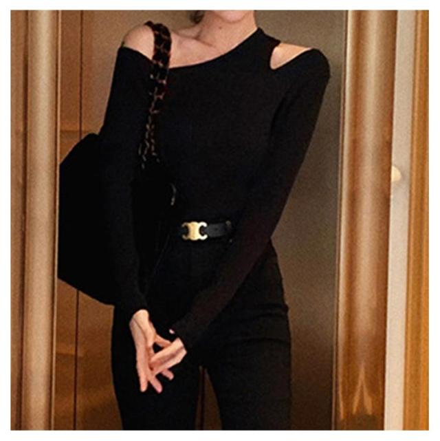 | ワンショルダーリブニット ちくちくしない肌触りのいい生地。 ストレッチ生地で、体に程よくフィットし上半身を綺麗に見せてくれ | |