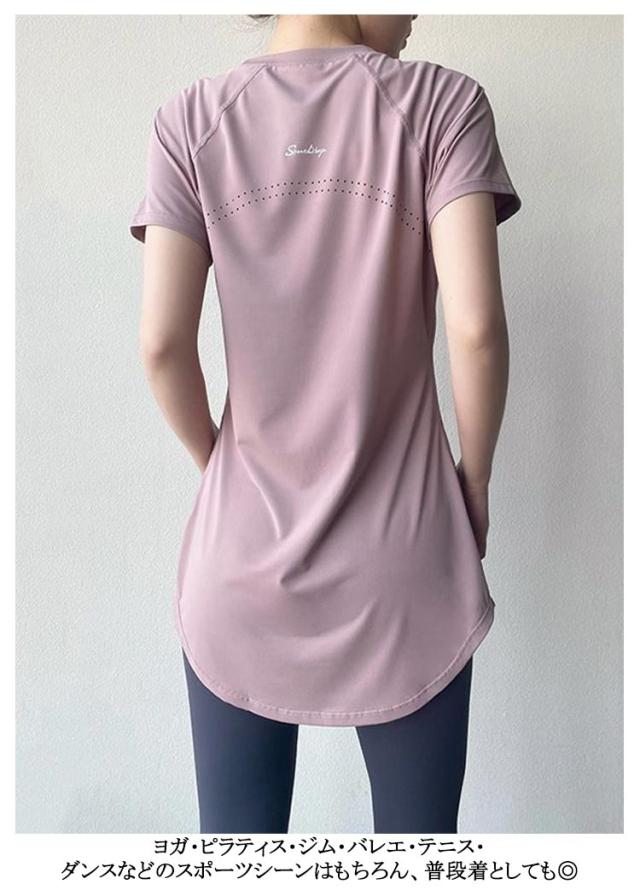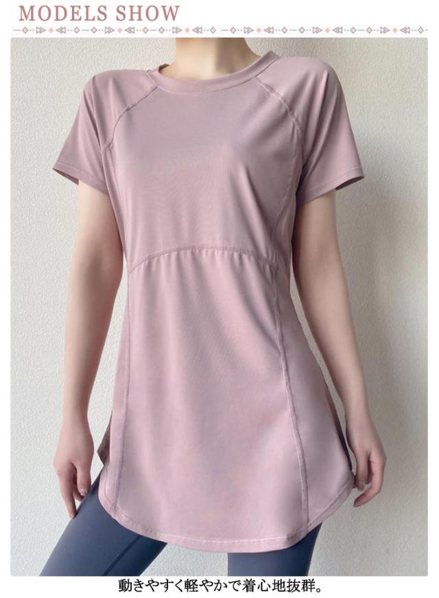トップス ジムウェア おしゃれ ヨガトップス 黒 ピラティス 体型カバー速乾 トップス 薄手 伸縮性 ゆったり スリット 丈長め ヨガウェア かわいい レディース ヨガウェア ウェア スポーツ フィットネス ヨガtシャツ ホットヨガ ストレッチ