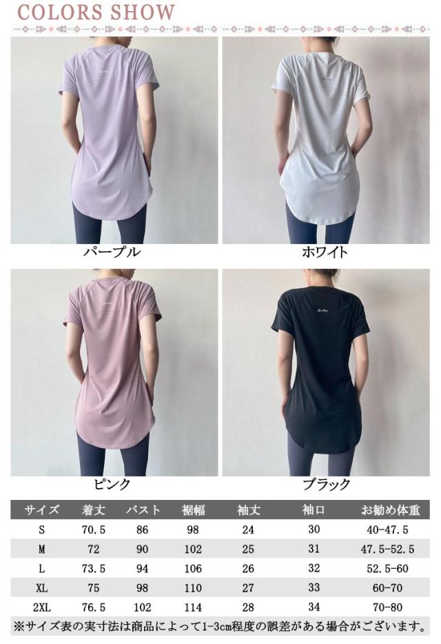丈長め ピラティス ヨガトップス 半袖 ジムウェア トップス 薄手 ヨガtシャツ 伸縮性 おしゃれ ゆったり スリット ヨガウェア ヨガウェア かわいい ウェア 黒 レディース スポーツ フィットネス 体型カバー速乾 ホットヨガ ストレッチ