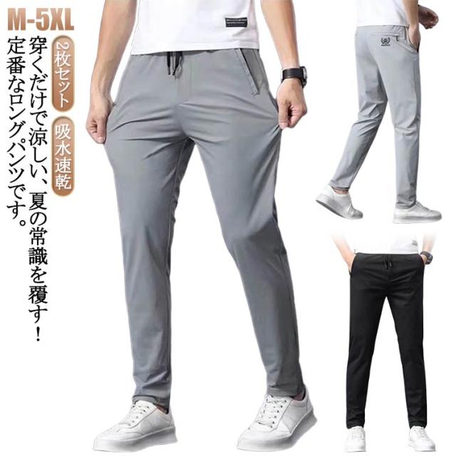 ロングパンツ 接触冷感 涼しい メンズ 涼感 接触冷感 スポーツパンツ 吸水速乾 2枚セット ストレッチ 春夏 ルームウェア ボトムス ゆったり 薄手 スウェットパンツ 長ズボン 部屋着 大きいサイズ 軽い 無地