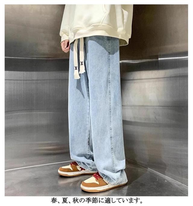 ストレートジーンズ デニム ワイドパンツ メンズ ストレートパンツ おしゃれ Gパン ロング丈 リラックス ジーパン ワイドパンツ ロングパンツ レディース カジュアル ボトムス 無地 長ズボン 大きいサイズ 春 夏 秋