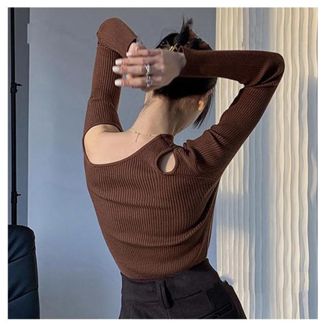長袖 ワンショルダー ニットプルオーバー ワンショルダー リブニット ニット 冬 オフショル ニットソー セーター トップス 秋 オフショルダー 春 細見え 大人可愛い シンプル カジュアル フェミニン トップス 秋