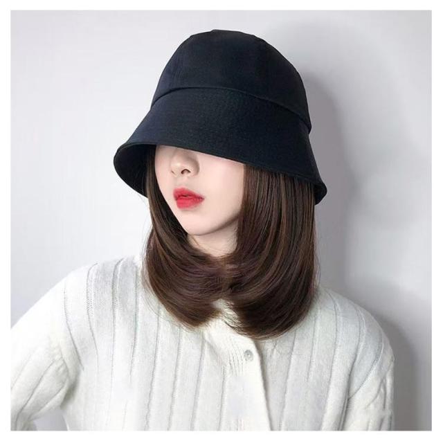 ショート 便利 ブラウン 毛付き帽子 便利 医療用ウィッグ 髪付き帽子 一体型 ウィッグ 帽子付きウィッグ 自然 簡単 ウィッグ付き帽子 送料無料 おしゃれ 小顔効果 可愛い ブラック