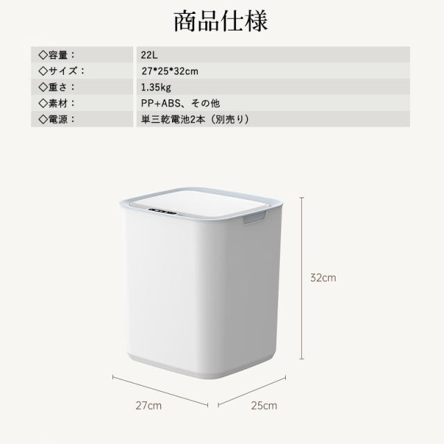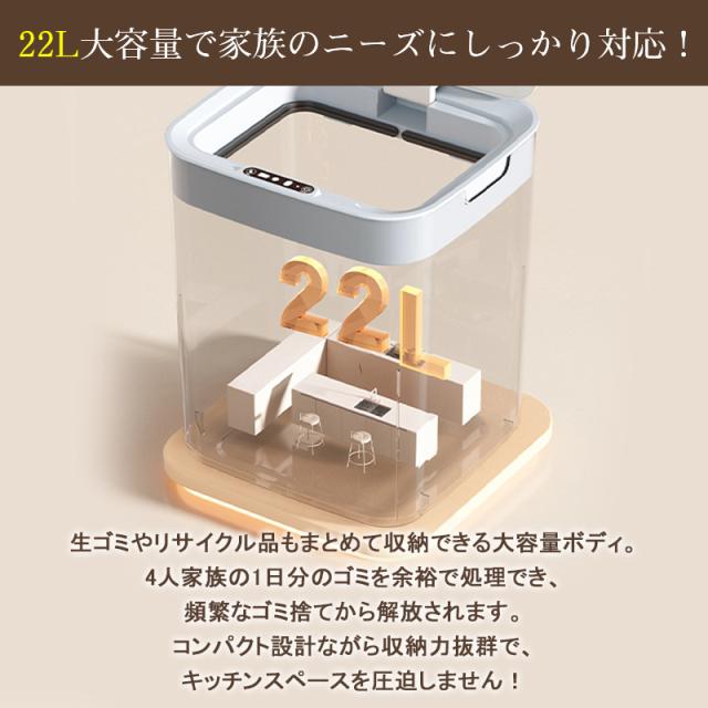 ゴミ箱 自動開閉 センサー キッチン オフィス トイレ 洗面所 22リットル 大容量 消臭 静音 防水 自動ゴミ箱 蓋付き 生ごみ