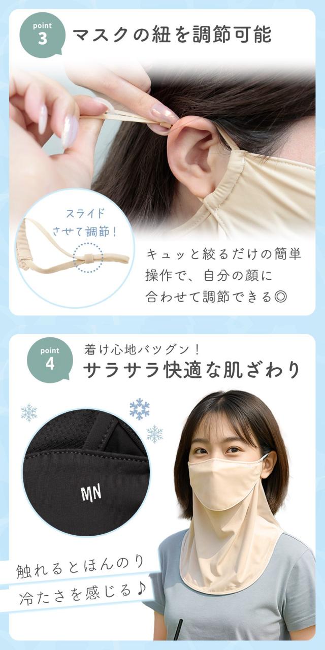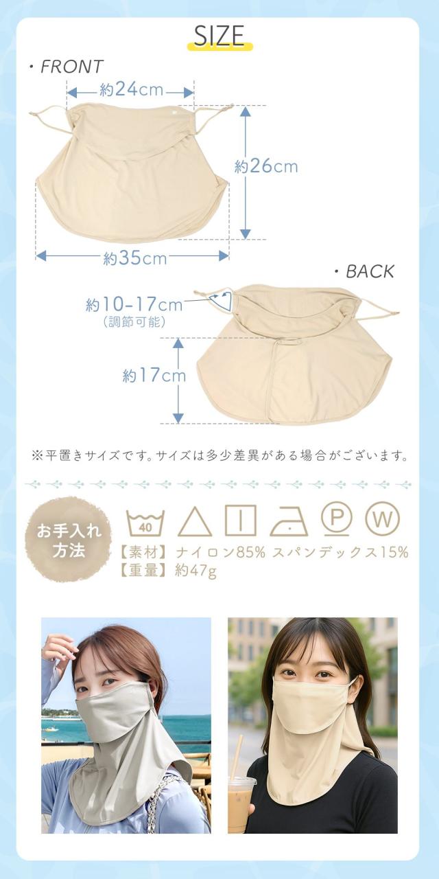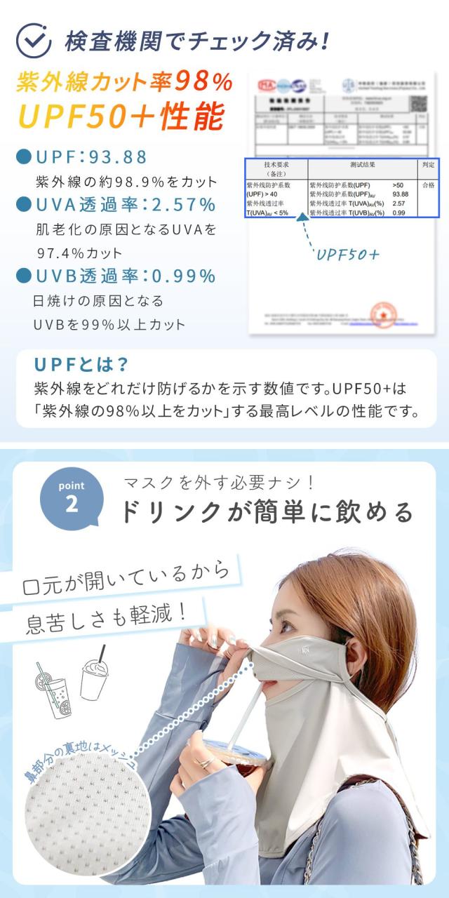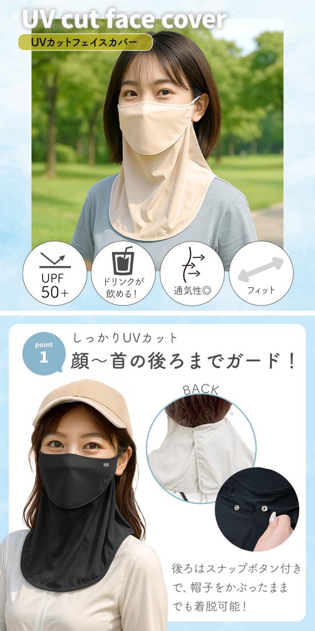 ・UPF50+で顔から首まで徹底UVカット