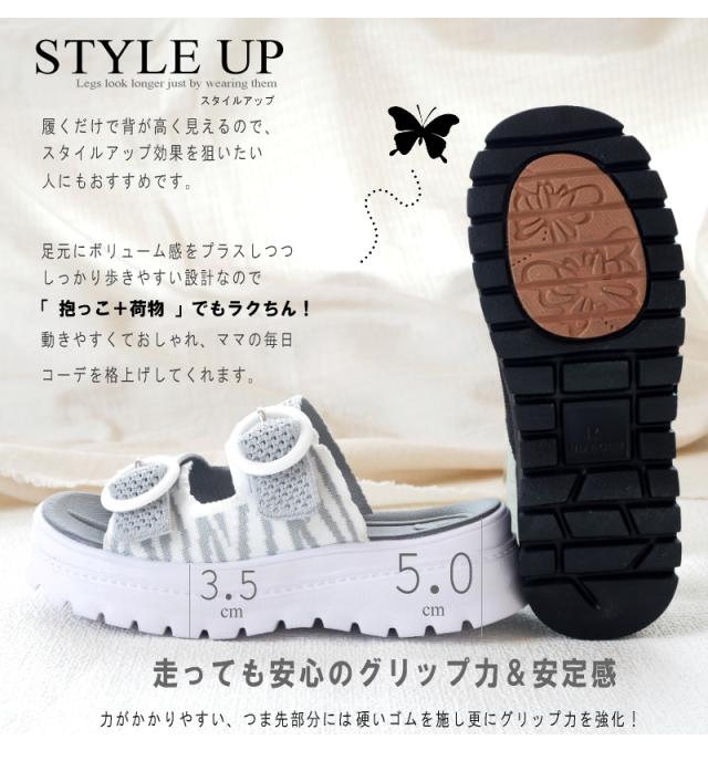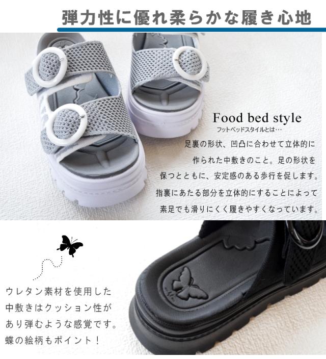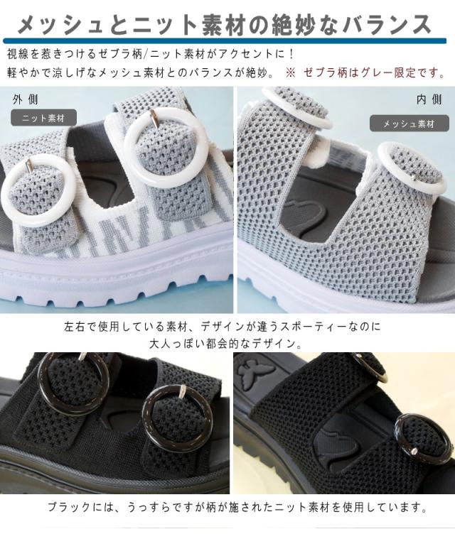 スポーツサンダル レディース ミュール ダブルベルト 厚底 ボリューム プラットフォーム 軽量 蝶 ニット メッシュ ゼブラ柄 滑りにくい スタイルアップ 夏 リゾート 旅行 フェス 3e