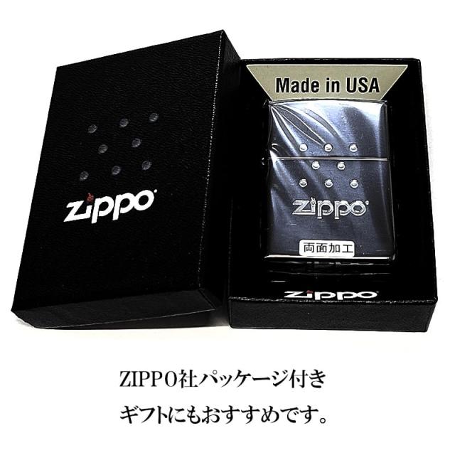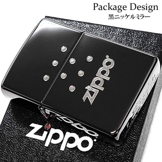 ZIPPO ライター パッケージデザイン ブラックニッケル ジッポ ロゴ かっこいい 両面加工 彫刻 鏡面 黒 メンズ おしゃれ ギフト プレゼント