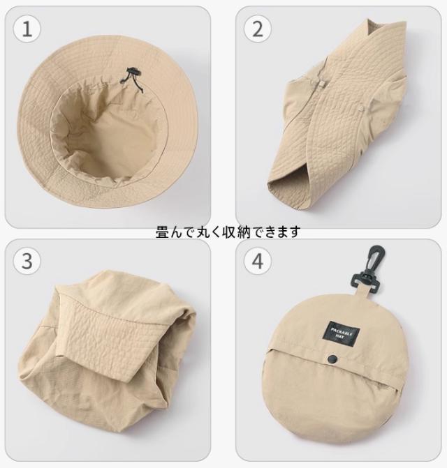サファリハット 男女兼用 日よけ帽子 収納袋一体型 コンパクト収納 日除けハット 折りたたみハット メンズ レディース