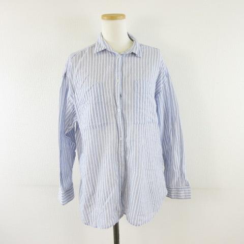 【中古】アメリカンホリック AMERICAN HOLIC インドコットンボイルシャツ ストライプ 長袖 水色 白 M *A544 レディース