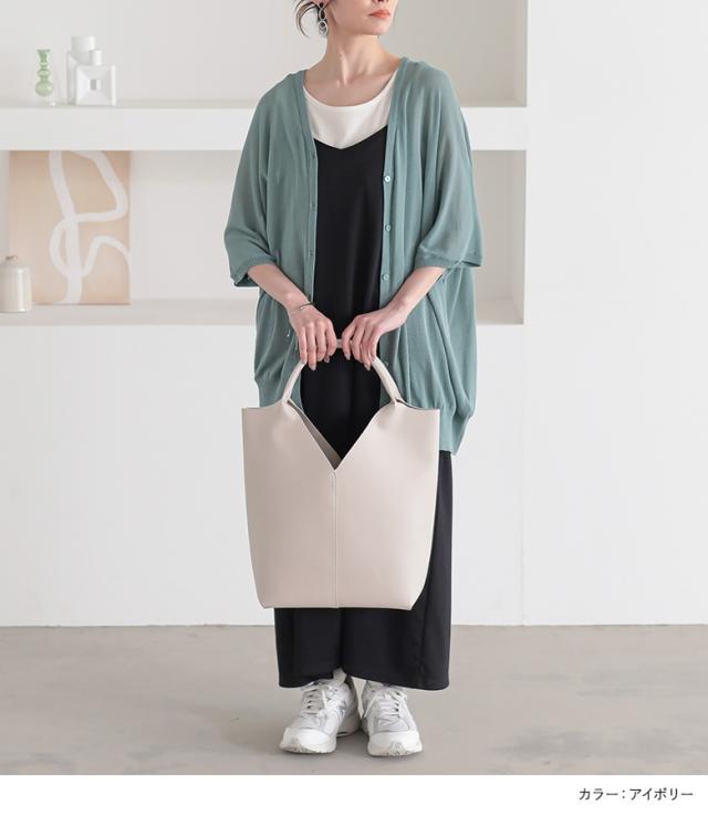 『合皮トライアングルカットトートバッグ』【メール便不可】【30】[トートバッグ レディース ファッション雑貨 鞄 かばん 肩掛け B5 自立する トライアングルカット 合成皮革 大容量 ポケット 春 夏 秋 冬]