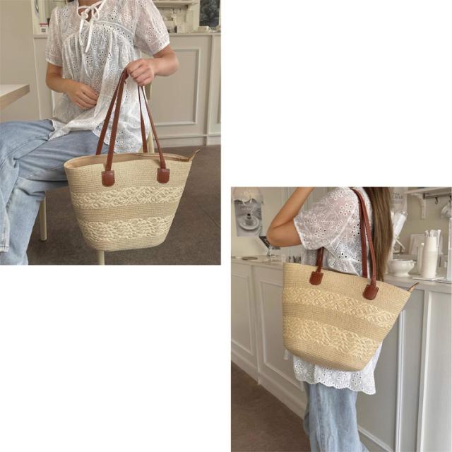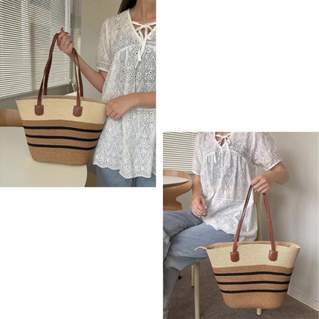 全品送料無料一部除く PUレザーハンドル ストロー編み かごトートバッグ【即納】韓国っぽ 韓国バッグ A4サイズ マザーズバッグ 鞄 カバン かばん カゴバッグ トートバッグ 大きめ バイカラー レディース 韓国 Y2Kファッション 韓国ストリート 流行り トレンド かわいい