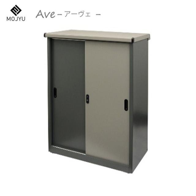 MOJYU 物置 Ave ラージ SED-006 ストレートグレー/パールグレー モジュ 鍵付き スライド扉 ツートンカラー おしゃれ 棚板可動式 ハイタイプ