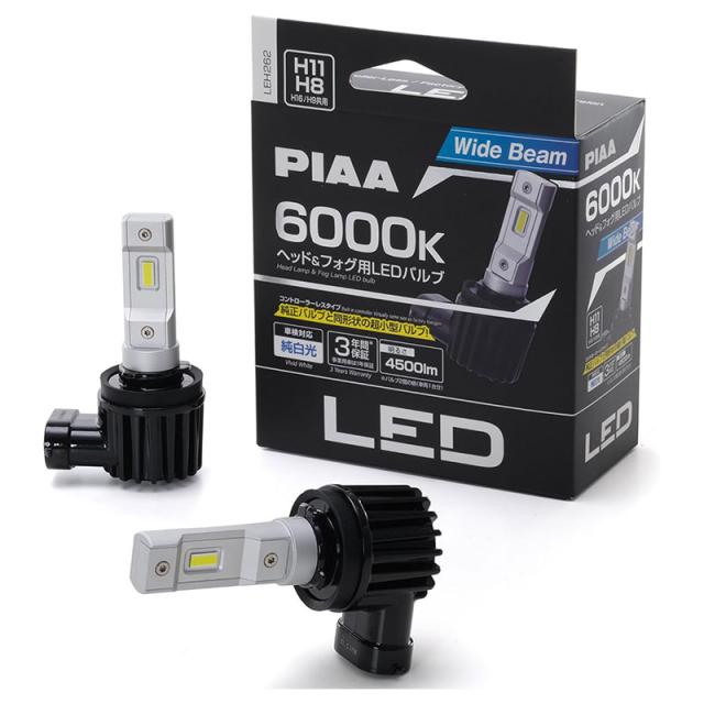 ヘッド&フォグ用 LEDバルブ H8/H9/H11/H16 純白光 6000K コントローラーレス 4500lm 12V 17W PIAA LEH262