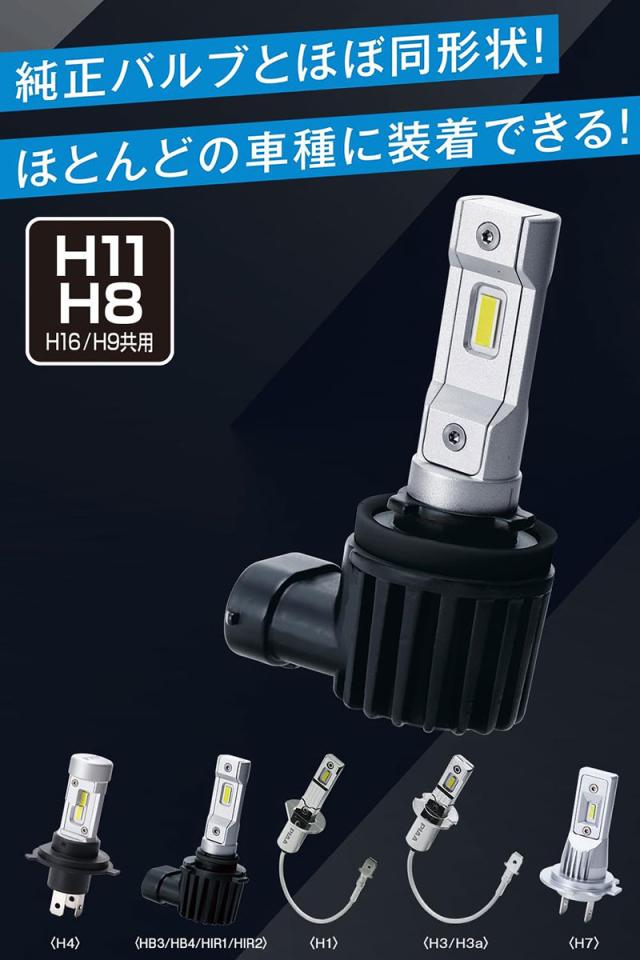 H4,HB,H11,H1,H3,H7の6タイプの幅広いバルブに対応!